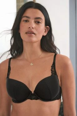 Next Black/Green/Plum Purple/Cream Push-Up Plunge Lace Bras 4 Pack