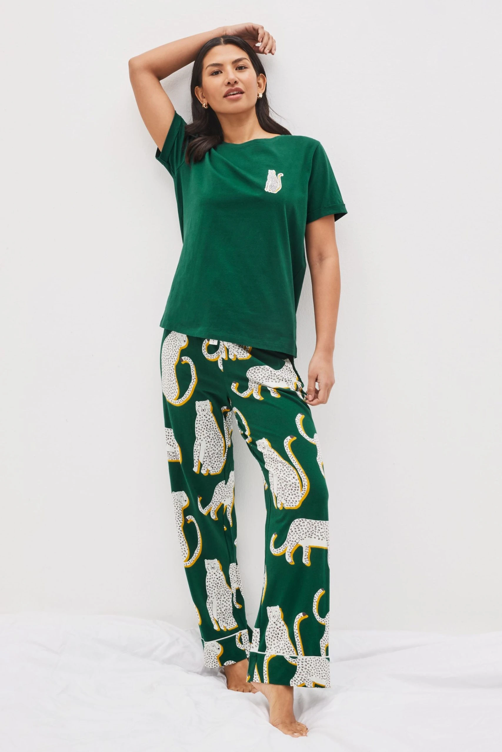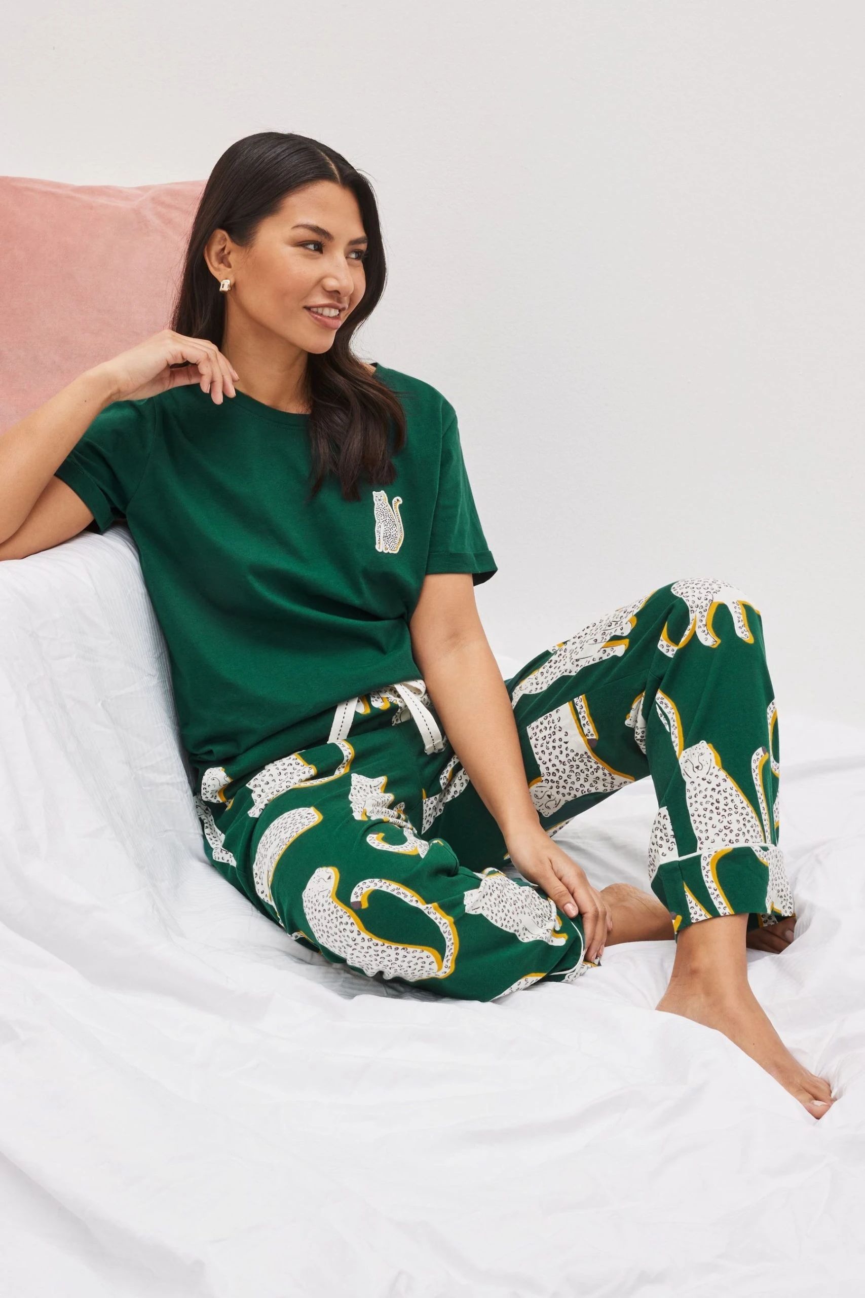 Get comfortable with this jersey pyjama set. In soft cotton fabric, this set includes a short-sleeved T-Shirt with a crew neckline and a pair of matching pyjama bottoms featuring the Scion Lionel print and elasticated waist with drawcord.