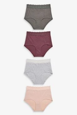 Next Lace Trim Cotton Blend Knickers 4 Pack