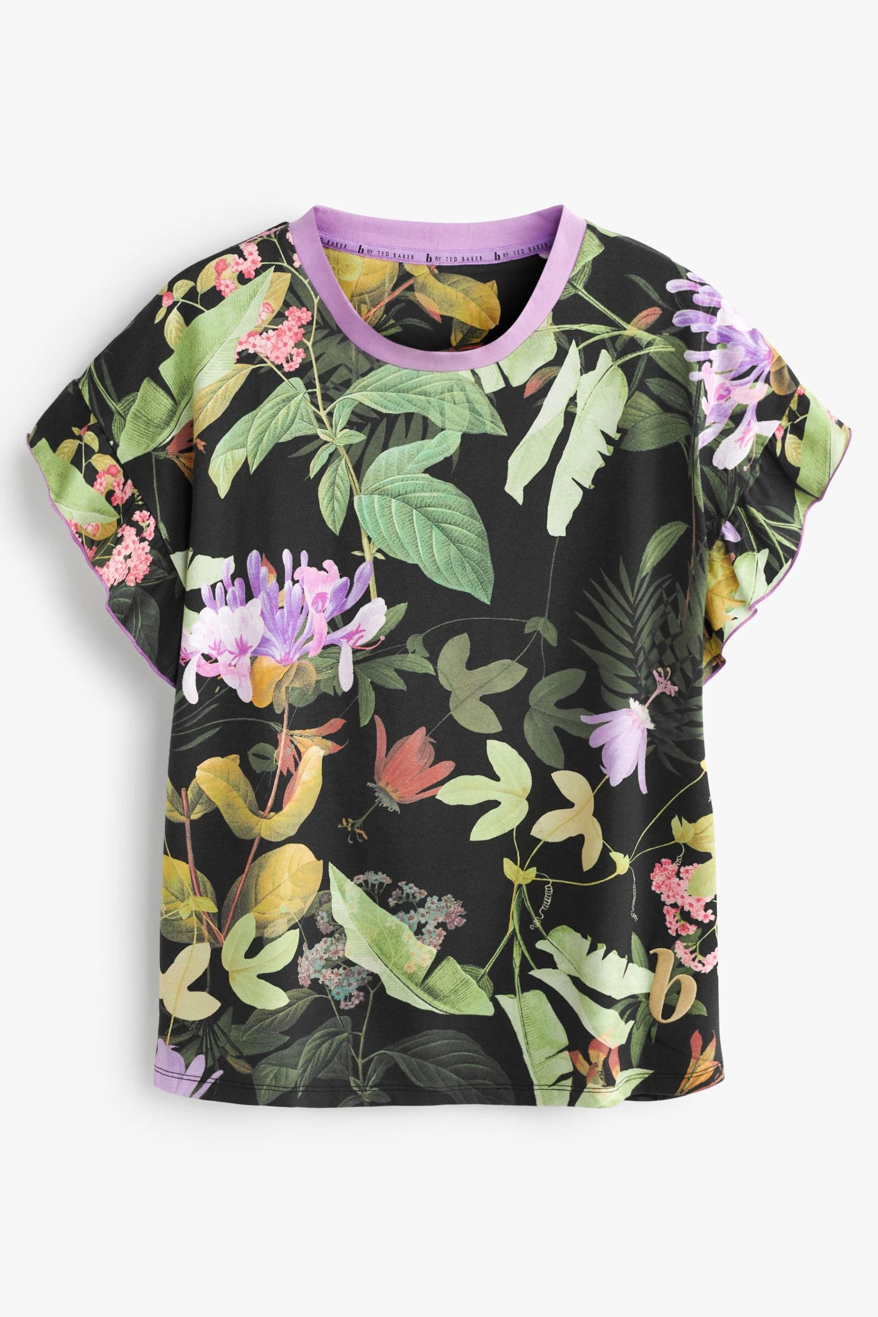 Adorned with an exotic floral print these B by Ted Baker PJs will keep you cool and comfortable for bedtime. The top features a contrast neckline and frill sleeve while the shorts have a branded elasticated waistband and side frill detailing. Cotton blend. Floral print. Contrast neckline. Frill Sleeve. Elasticated waistband. Side frill detailing.