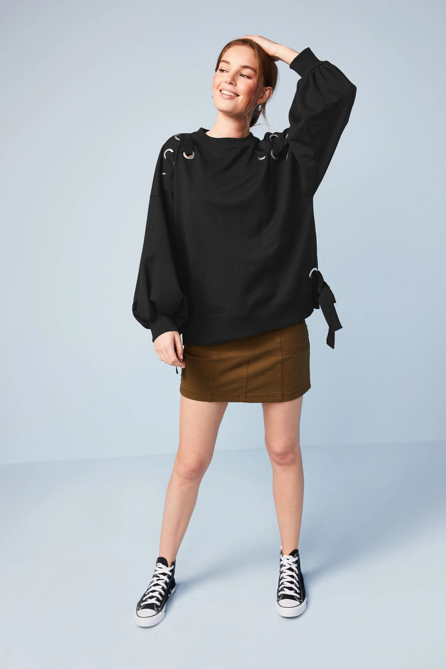 Next Black Eyelet Feature Sweat Top