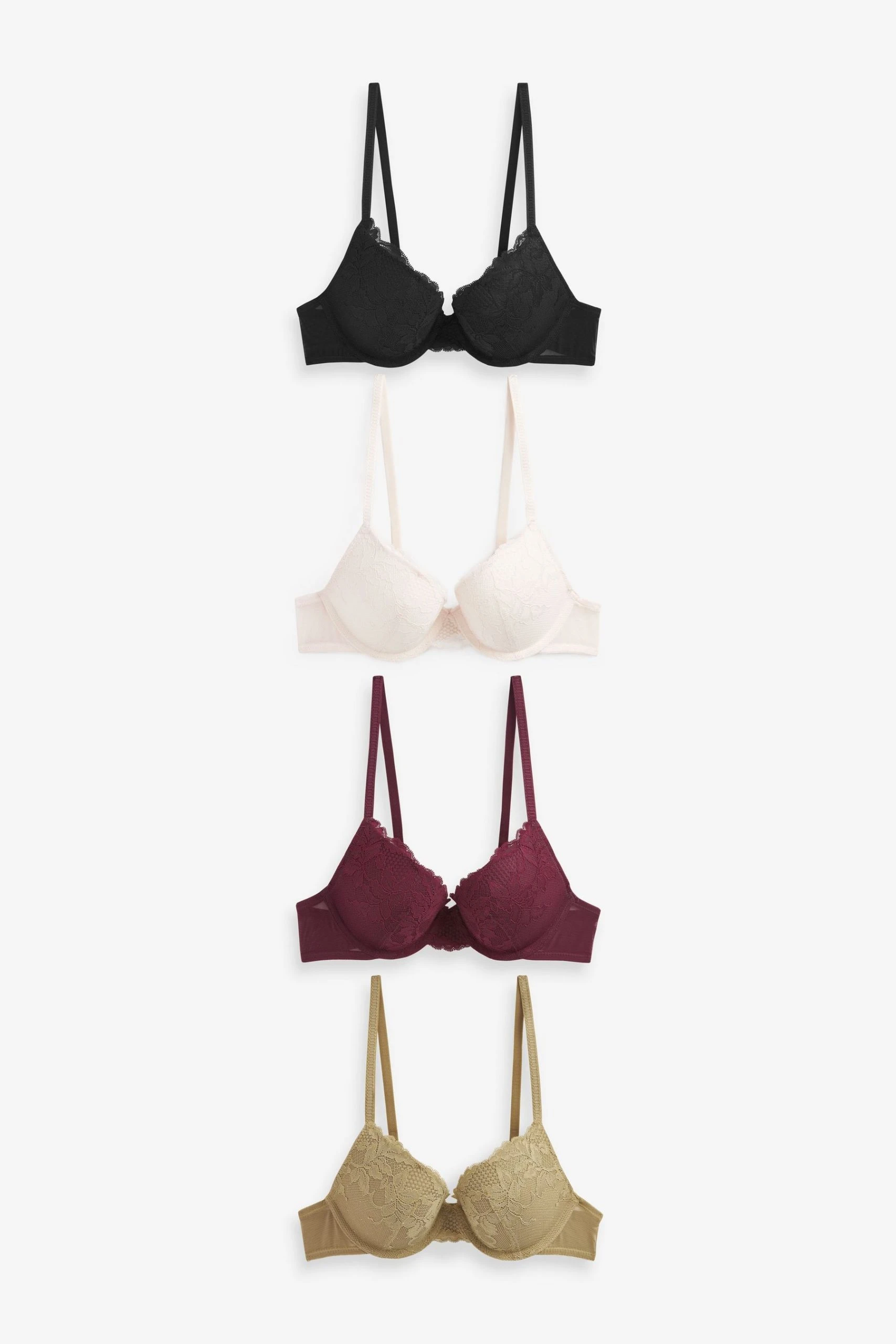 Next Black/Green/Plum Purple/Cream Push-Up Plunge Lace Bras 4 Pack