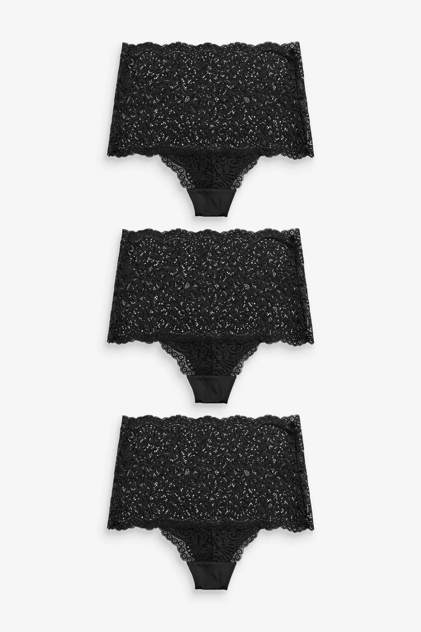 These elegant pack of 3 knickers are designed in a flattering short cut shape that sits low on the leg with full coverage for a comfortable everyday feel. The all-over lace design offers just the right amount of style to your lingerie collection.