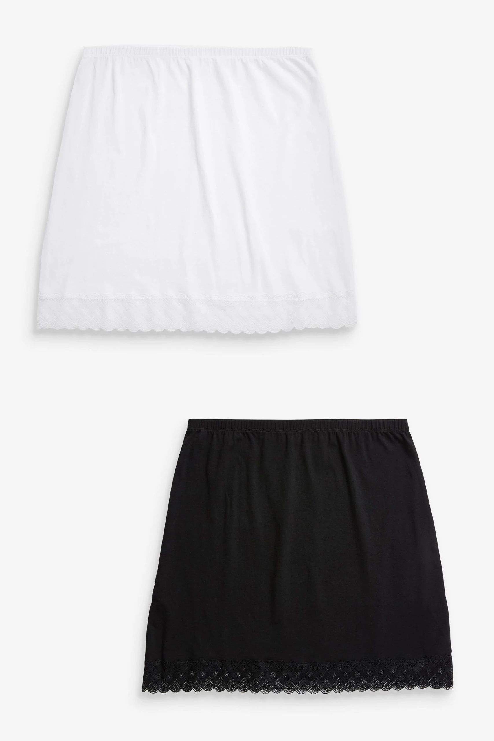 Add an extra layer underneath all your favourite skirts and dresses with this pack of two half slips. Made from soft and stretchy cotton, each slip features delicate lace hem and an elasticated waistband for all-day comfort.