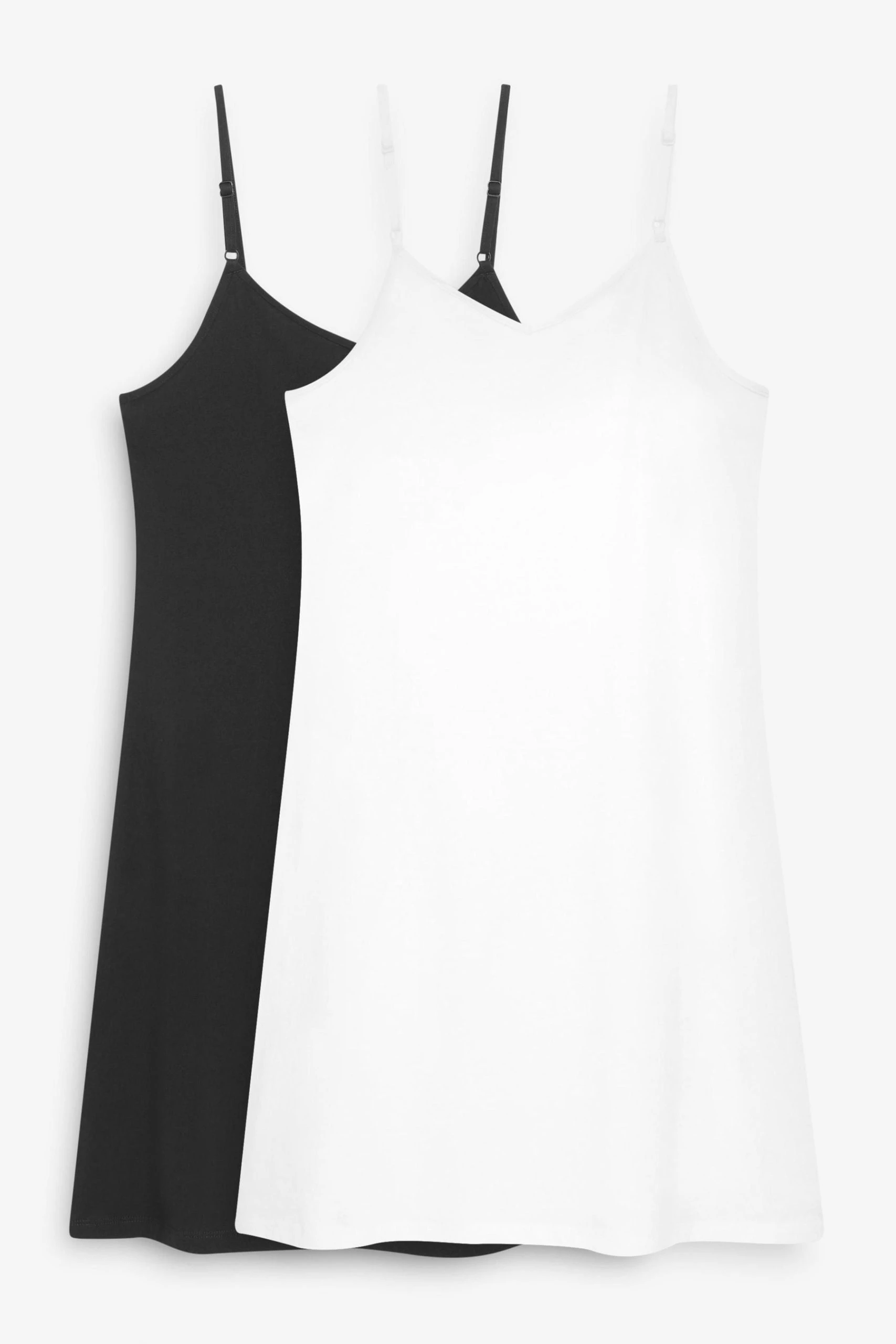Designed for you to wear underneath all your favourite outfits, these two slips are made from supersoft cotton, with a flattering V-neck and adjustable straps for the perfect fit.