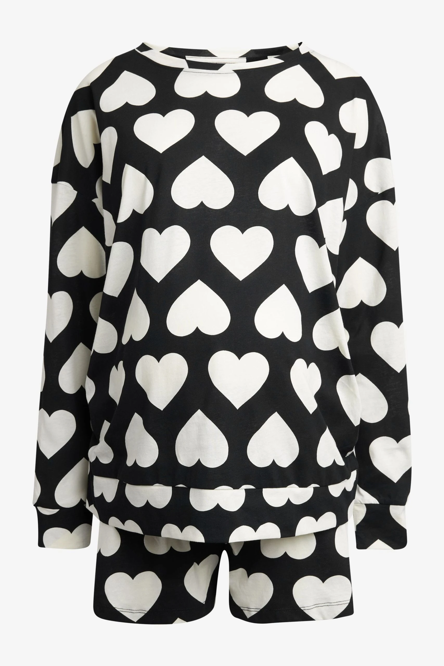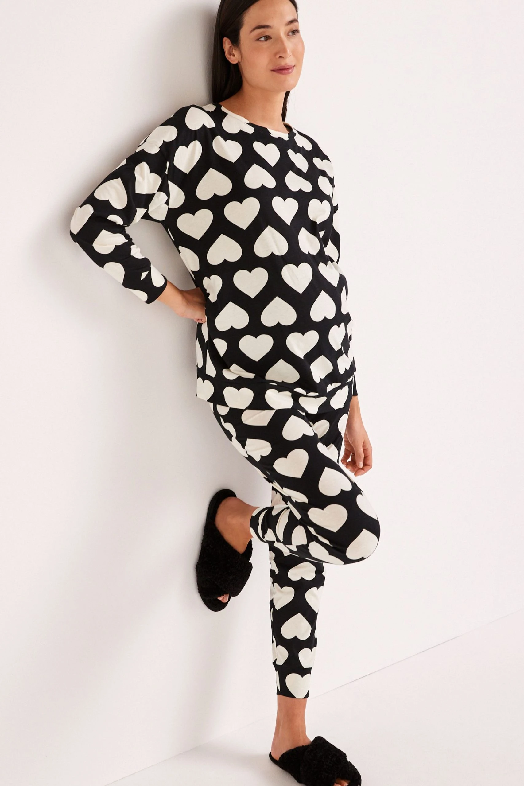 Next Black/White Heart Maternity Cotton Short And Long Pyjamas 2 Pack
