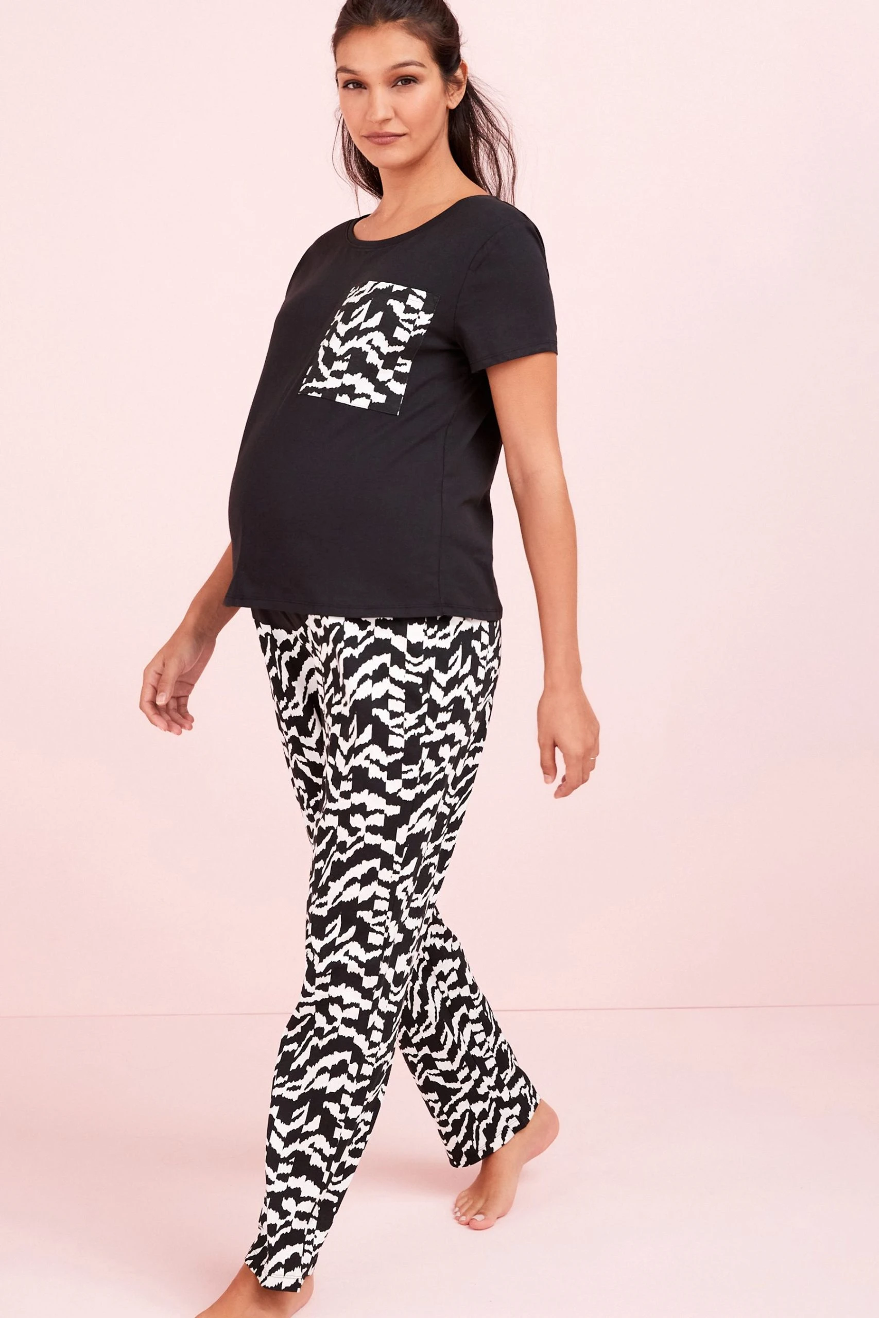 These maternity pyjamas are designed with over the bump support for ultimate comfort. Designed with breathable cotton for a supersoft feel and a fun animal print.