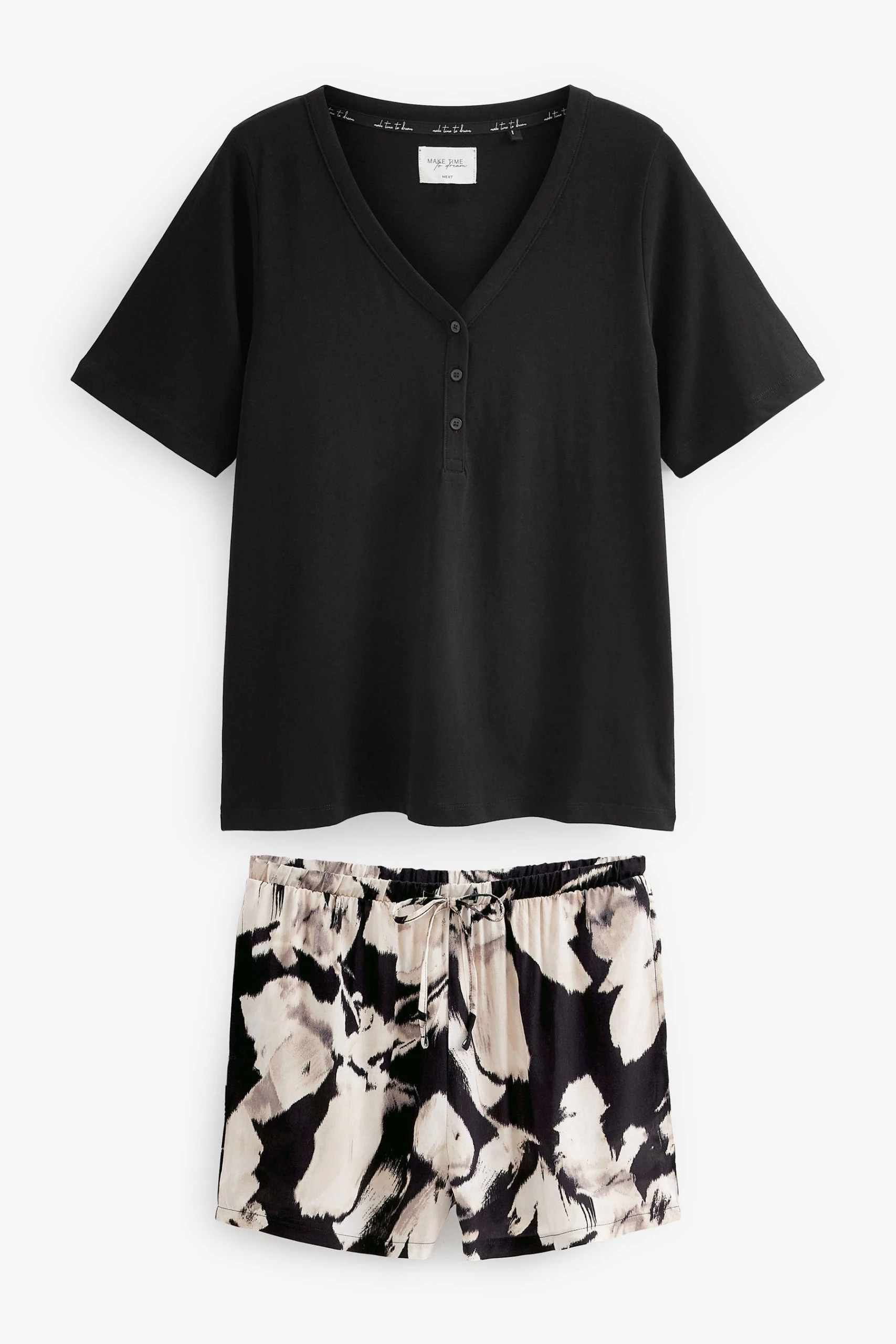Cotton Jersey fabric. Lightweight. V-Neck. Buton details. Short sleeves. Floral Print on the shorts. Side functional pockets.