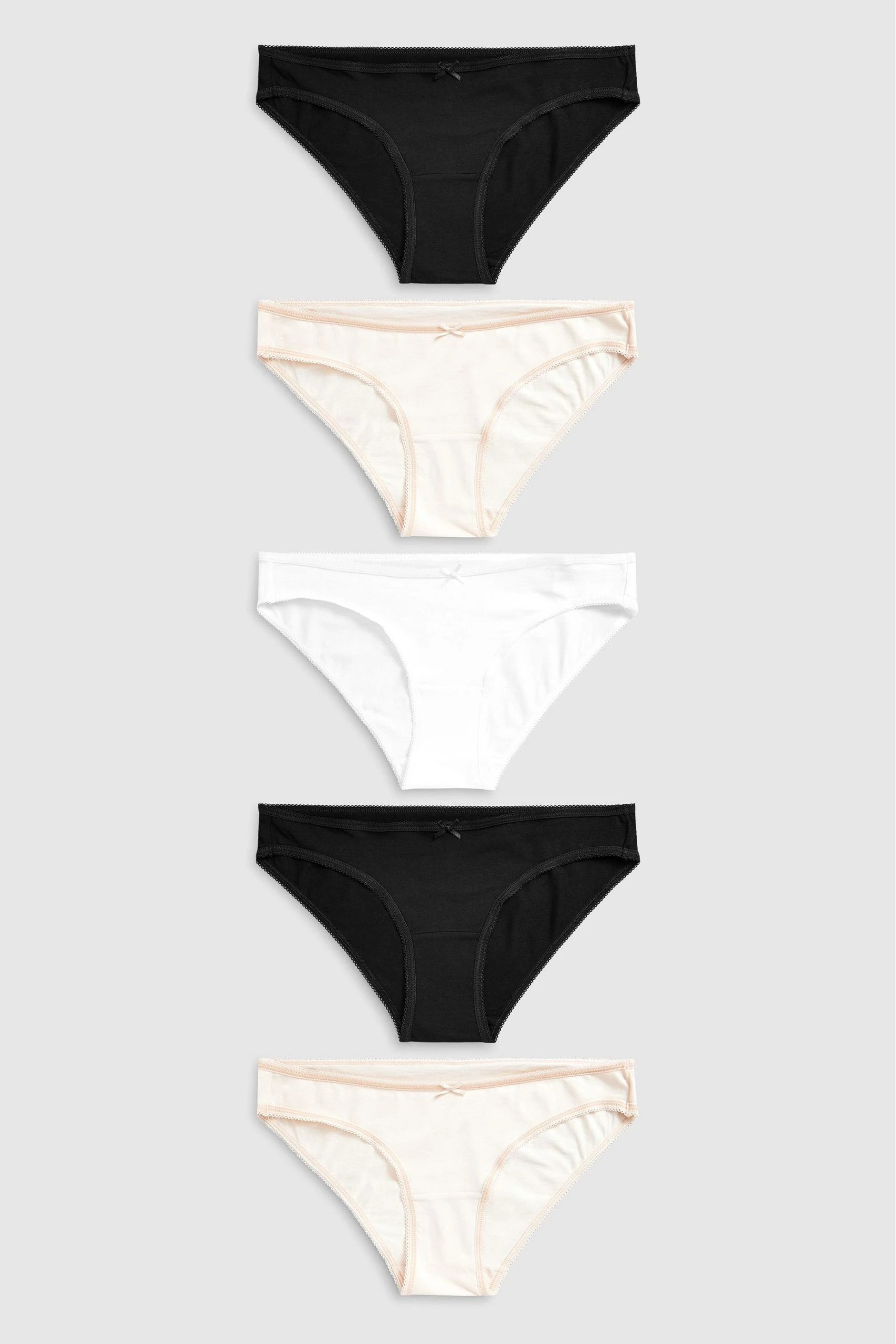 The ultimate in everyday comfort. Next 5 pack of knickers are made from soft cotton. This multipack contains five pairs for a relaxed feel through the week. In a range of cuts to suit your preference including full brief, short, thong, midi, bikini, high leg and extra high leg.