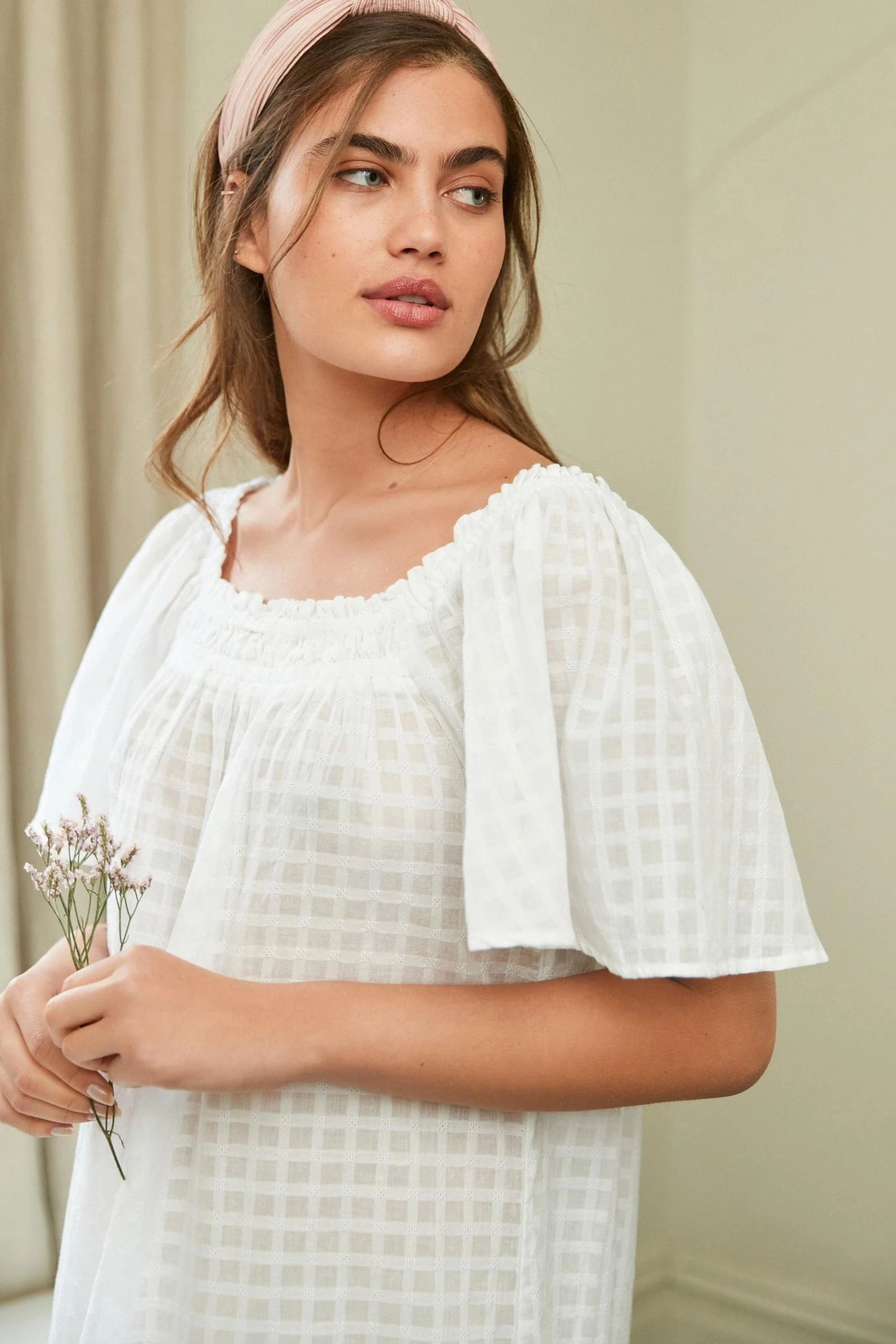 Stay comfy all evening long with this flowy nightdress, made from 100% cotton with short sleeves and a shirred neckline. Regular length 109cms. Tall length 121cms.
