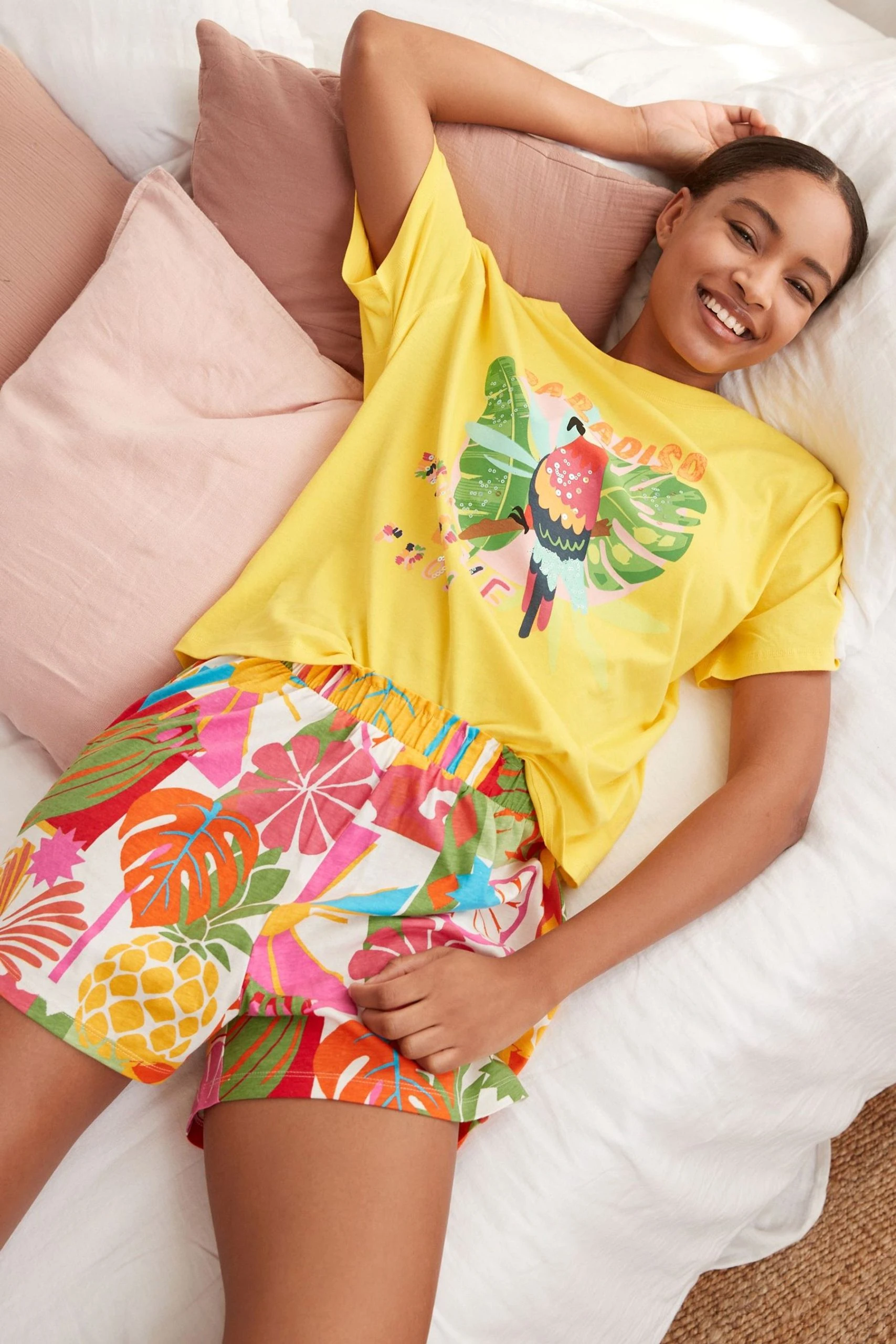 100% cotton. Relaxed fit. Crew neck. Short sleeves. Elephant graphic. Elasticated waistband shorts. All over printed shorts.