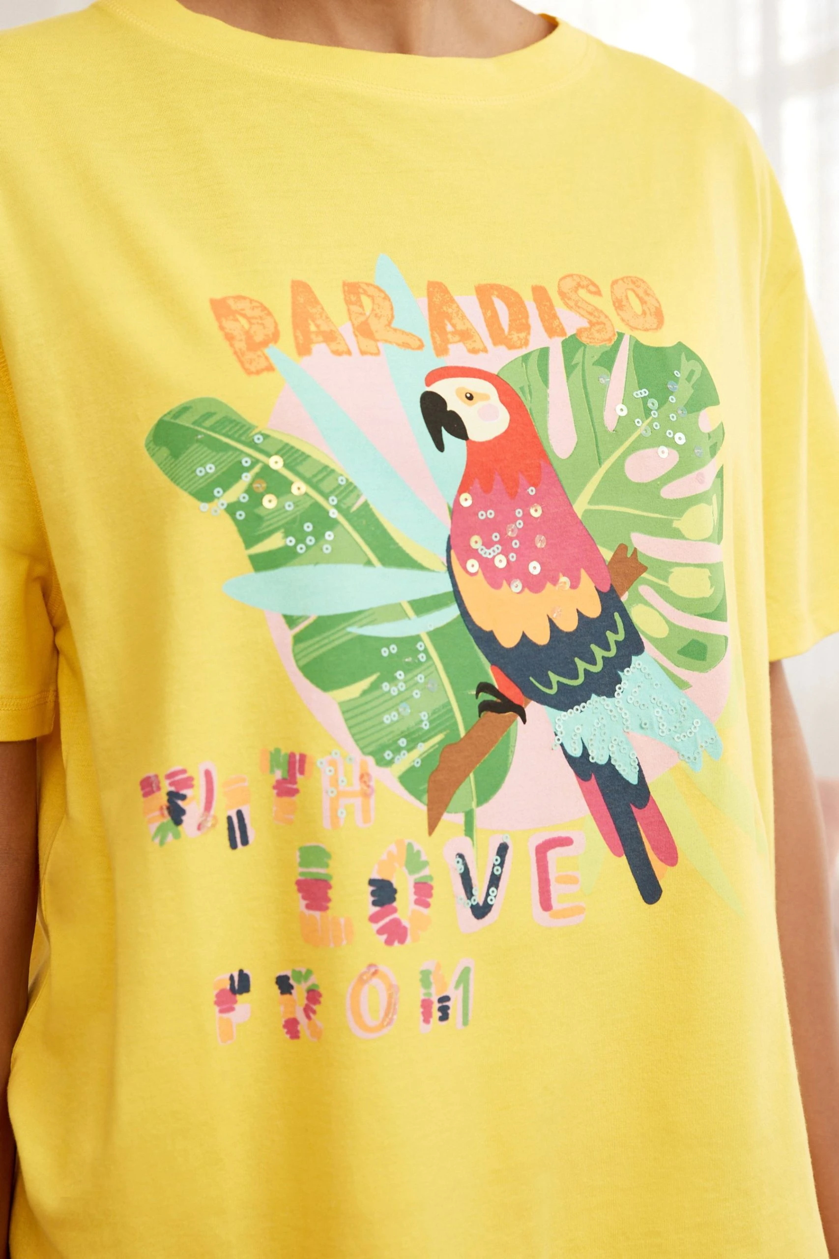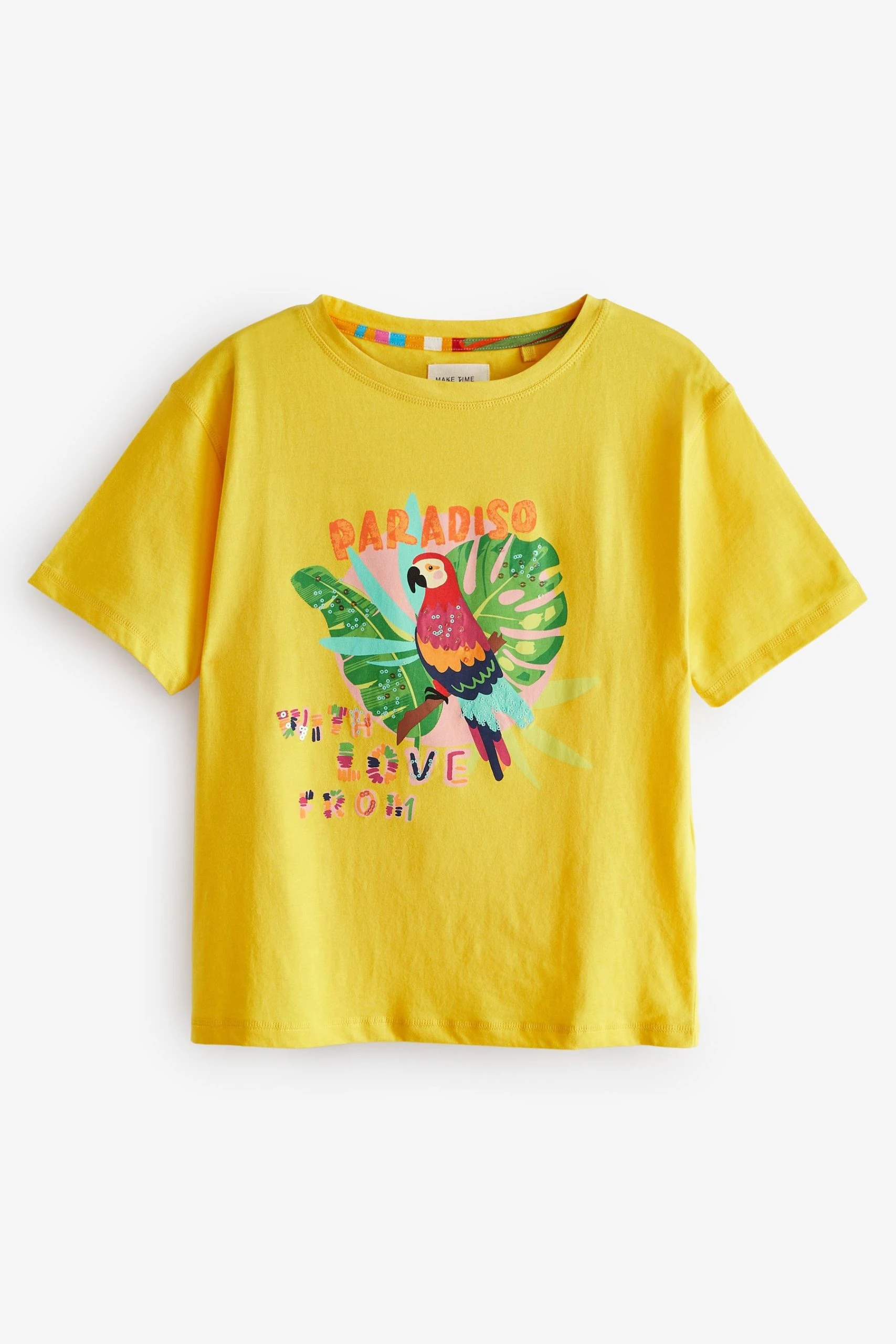 | Colour | Yellow Parrot, Black/Cream Elephant, Pink/Teal Blue Leopard, Blue Slogan, Ecru Lemur |