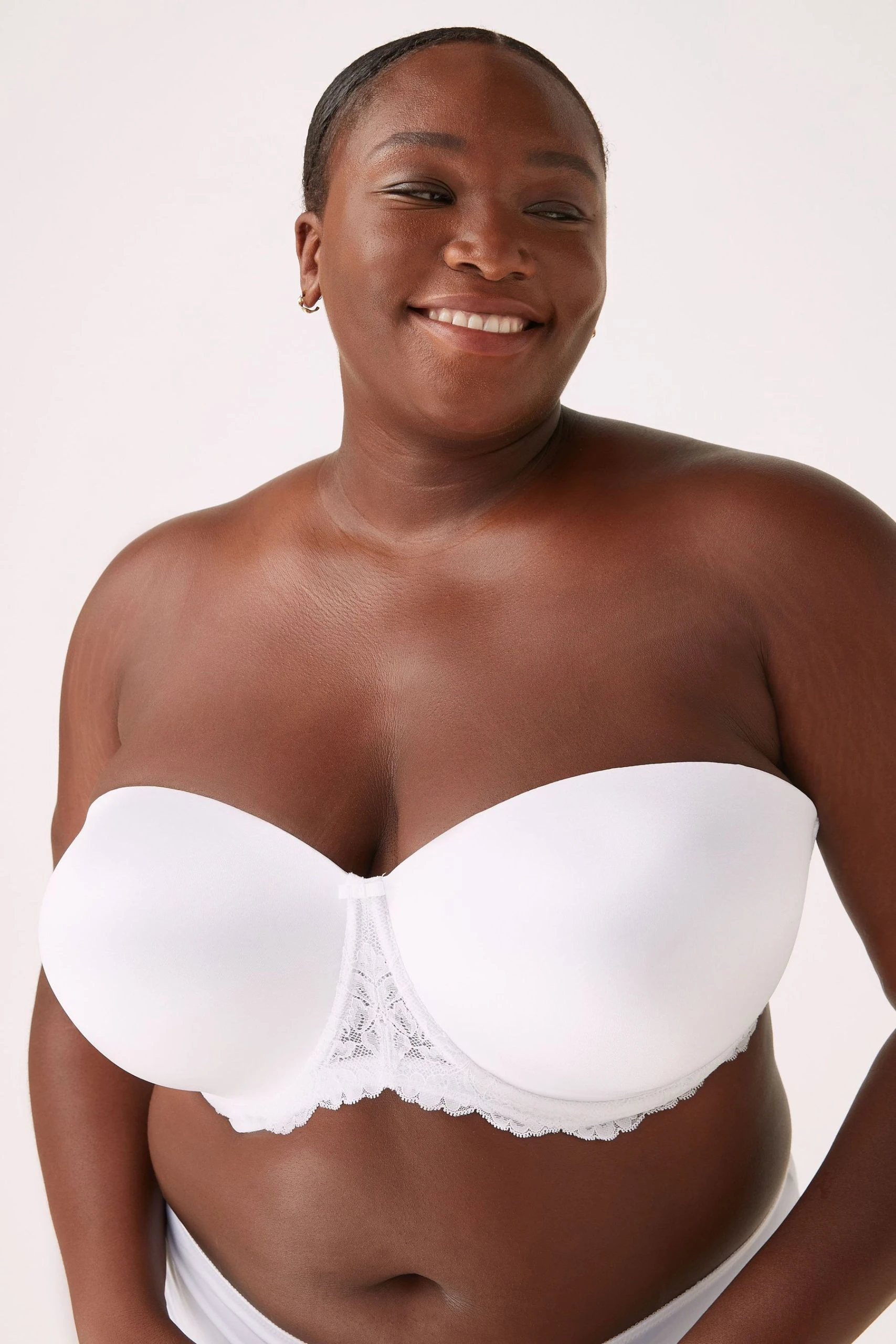 Our bestselling Phoebe multiway bra is the perfect outfit solution. As part of our DD+ Collection, this style provides perfect support for the fuller bust. Designed with a soft microfibre to create a smooth silhouette, light padding, removable straps, lace details and four ways to wear: regular, halterneck, strapless and cross-back – our multiway completes any outfit.