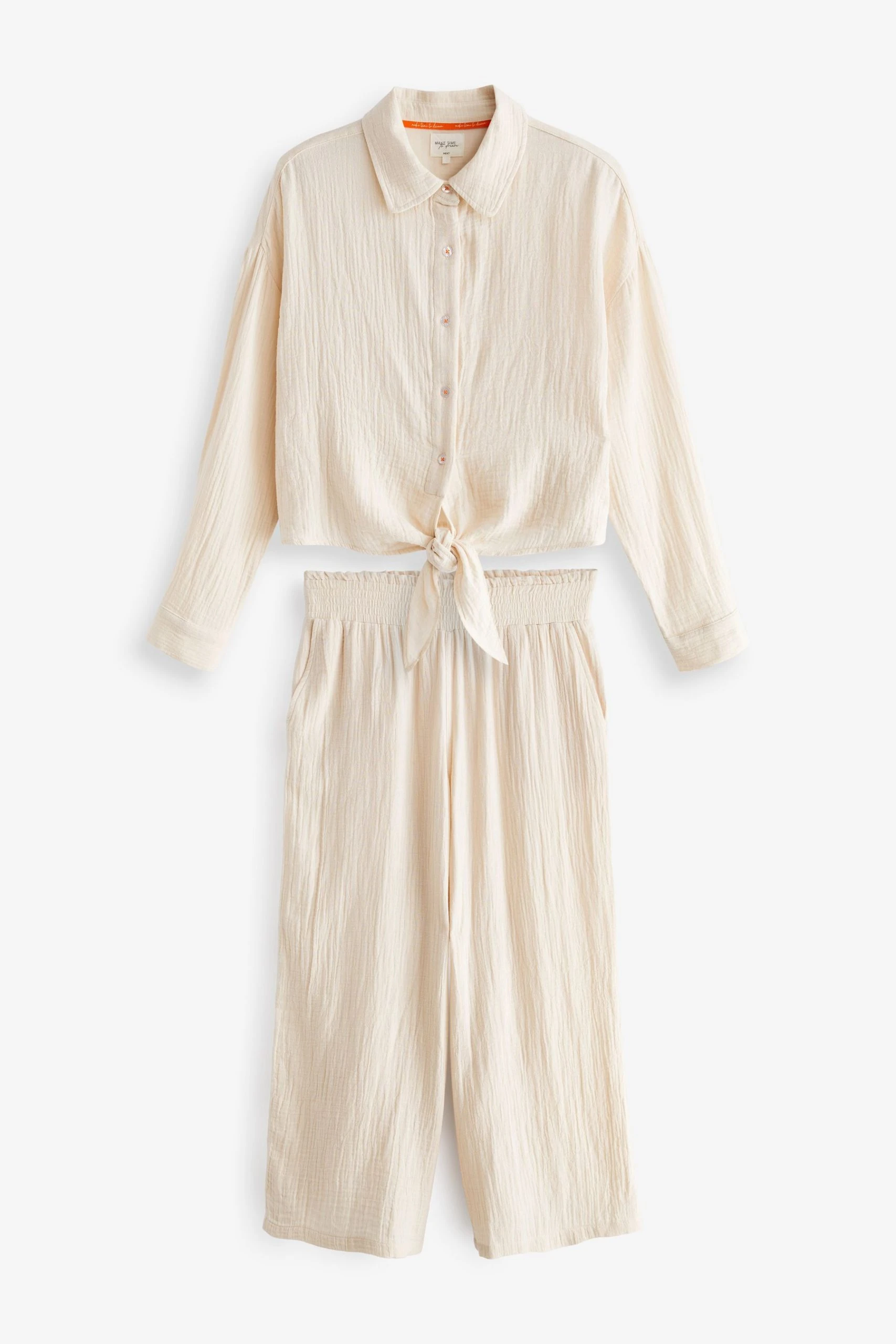 Next Ecru Cream Crinkle Button Through Pyjamas