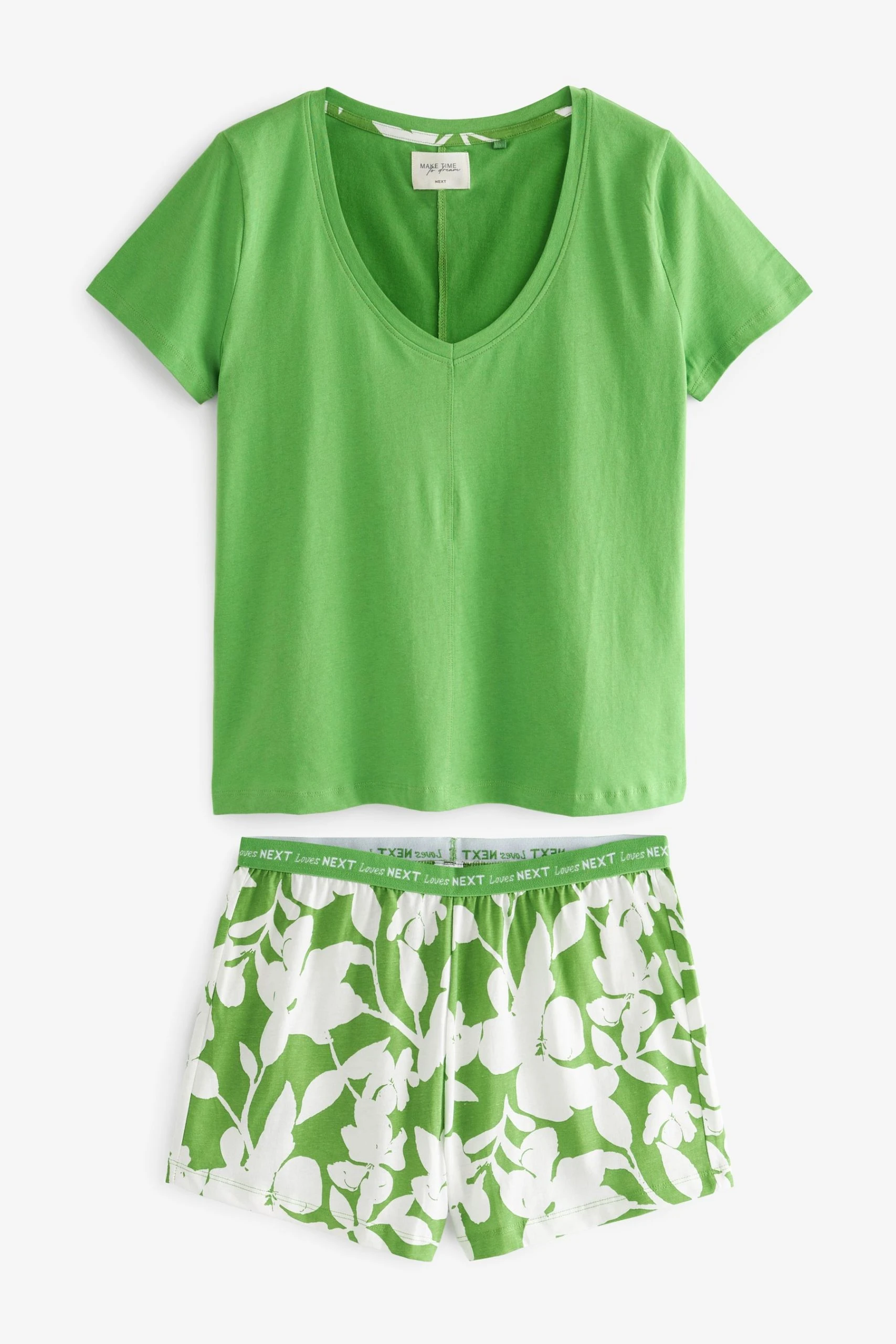 Next Green Green Floral Cotton Short Sleeve Pyjamas