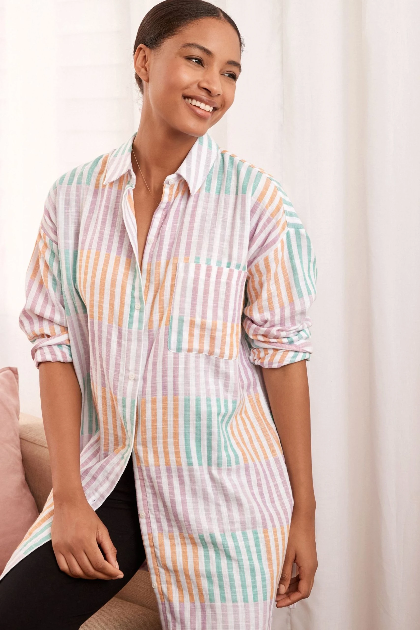 Next Green/Lilac Purple Multi Stripe Cotton Nightshirt