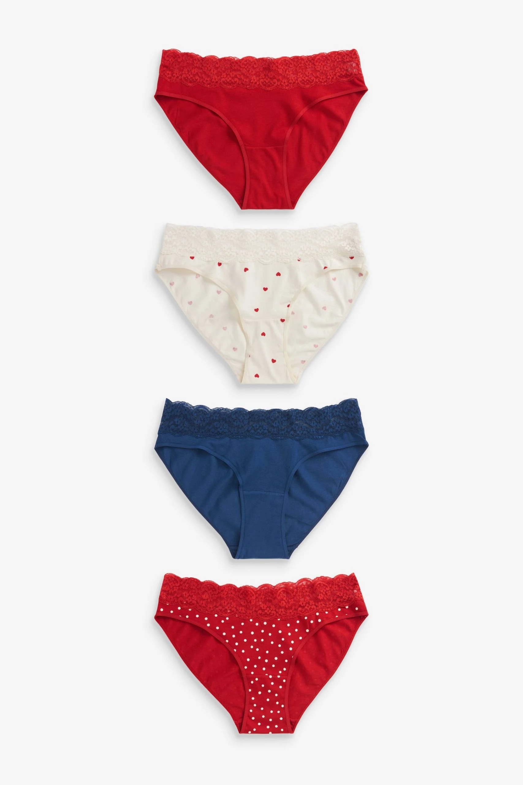 Next Lace Trim Cotton Blend Knickers 4 Pack
