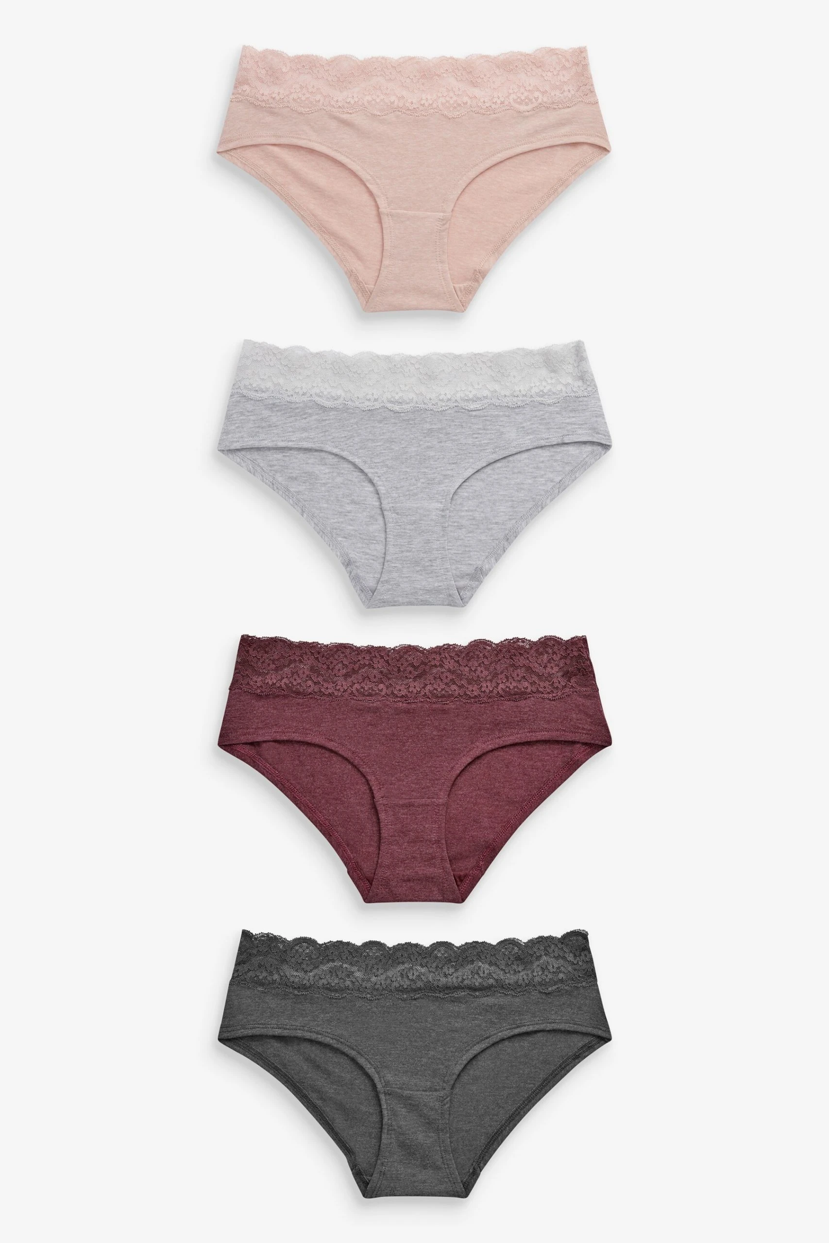 Next Lace Trim Cotton Blend Knickers 4 Pack