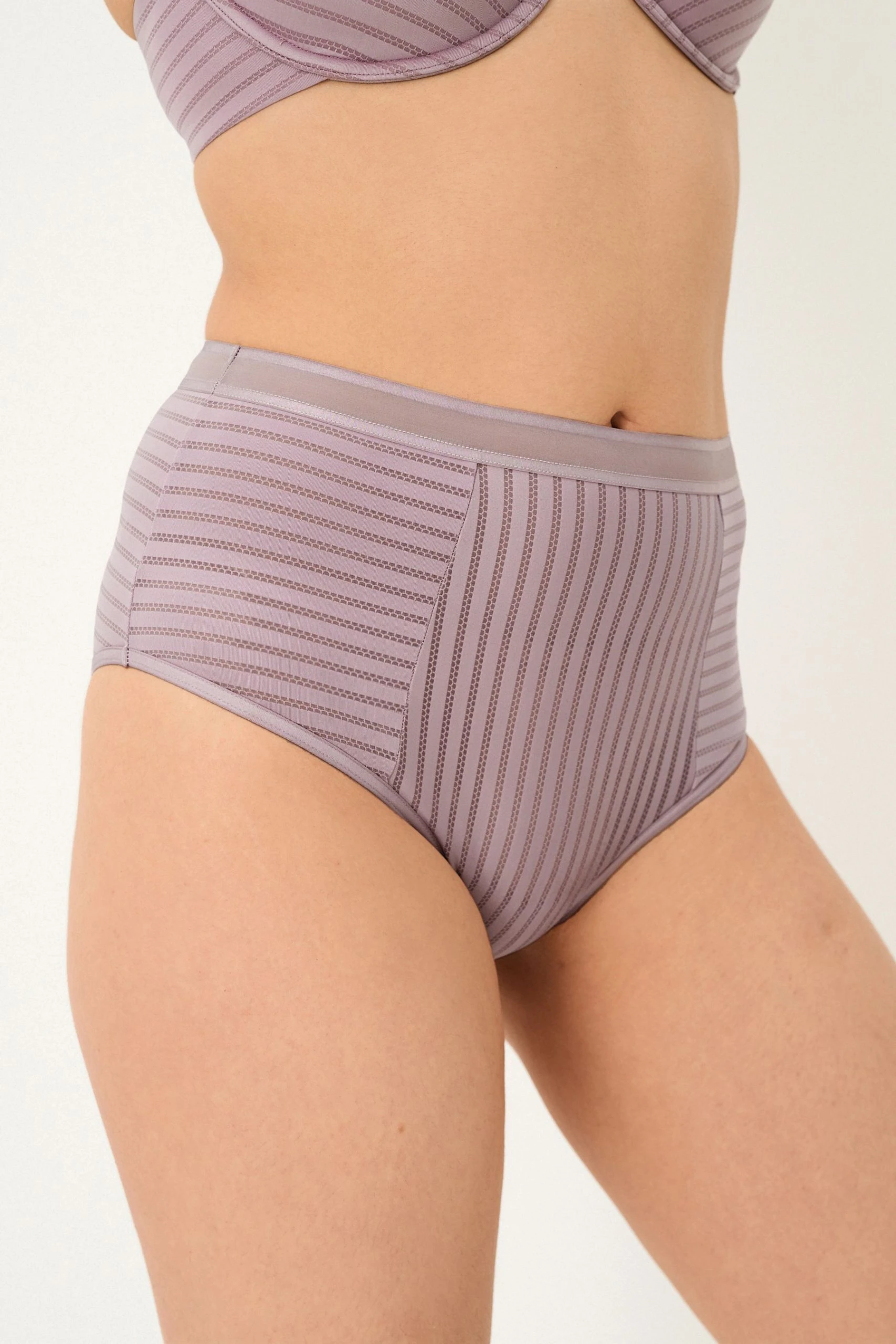 Next Lilac Purple/Cream Stripe High Waist Knickers 2 Pack