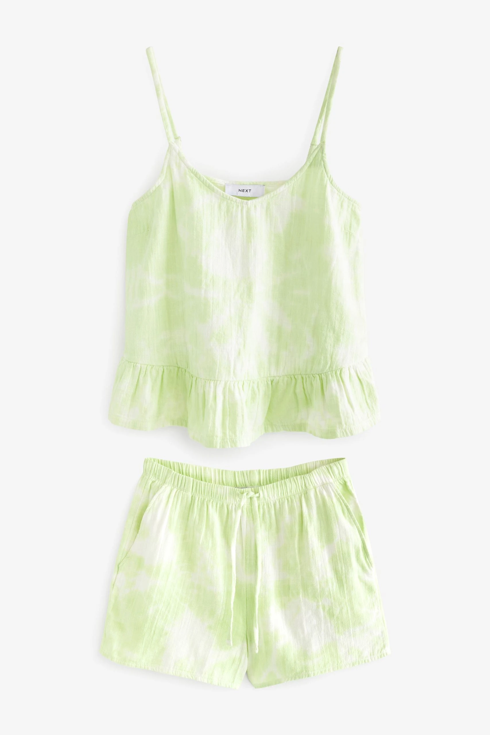 Next Lime Green Cotton Crinkle Cami Short Set Pyjamas
