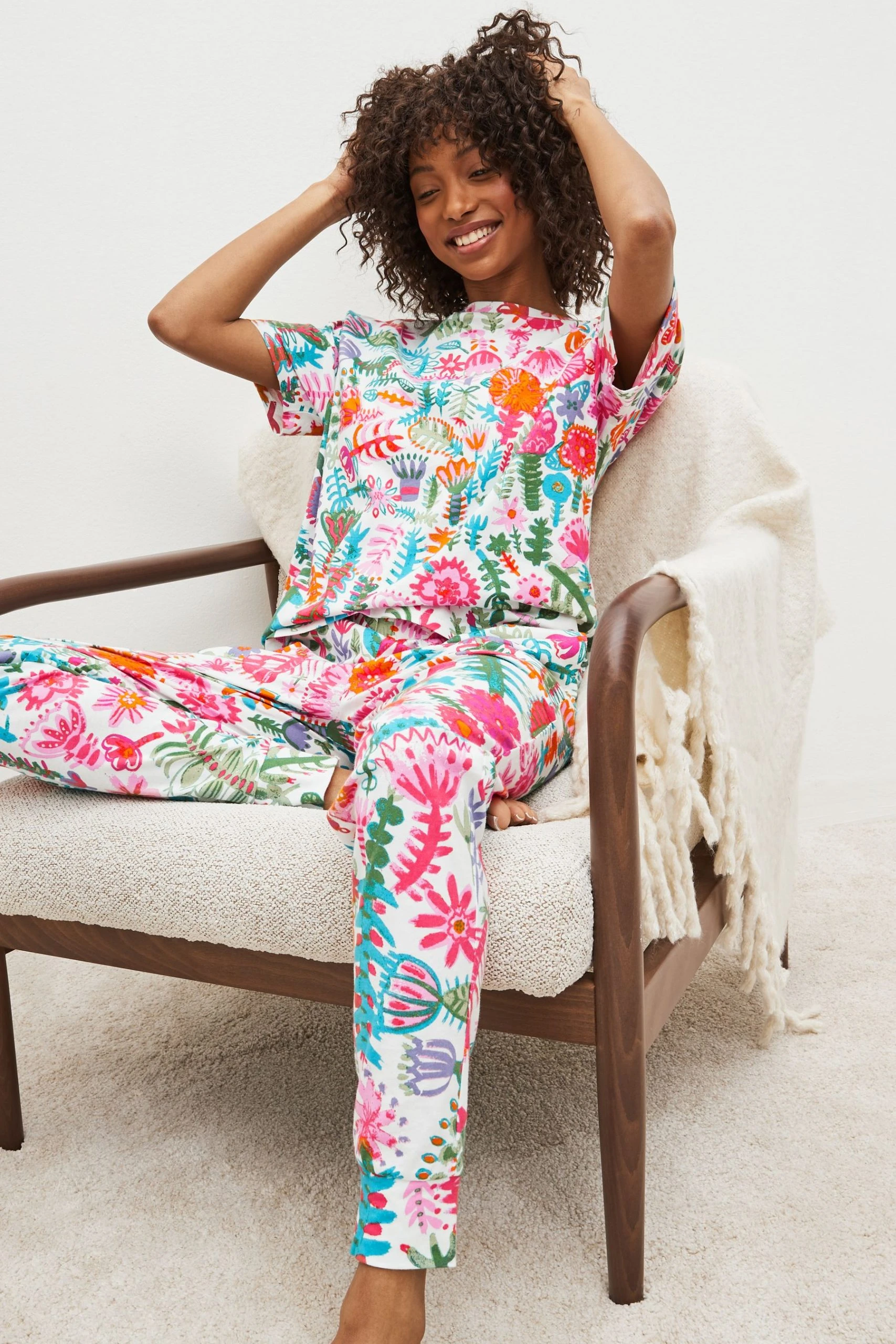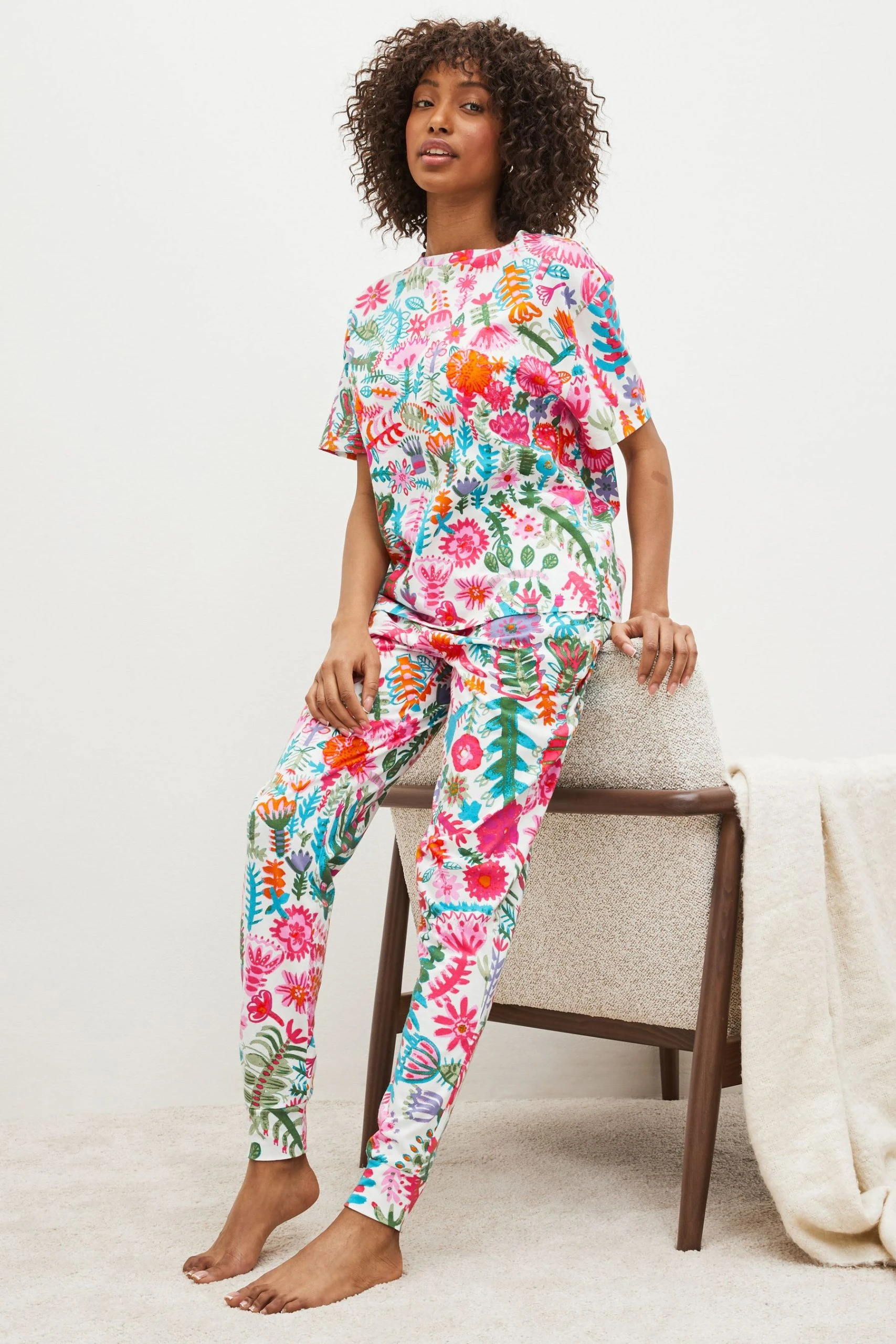 Next Lucy Tiffney White Floral Lucy Tiffney White Floral Short Sleeve Long Leg Pyjamas Set