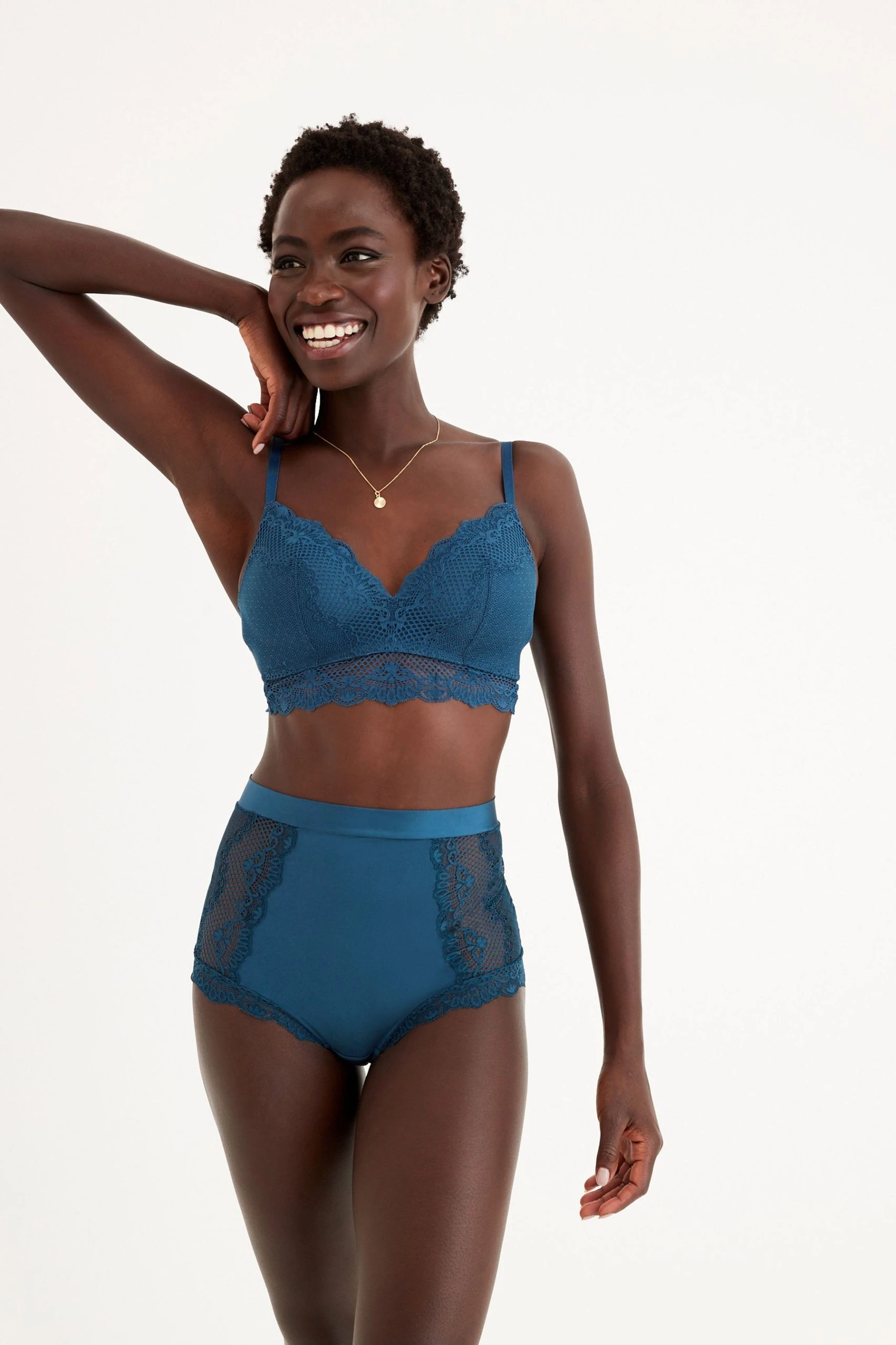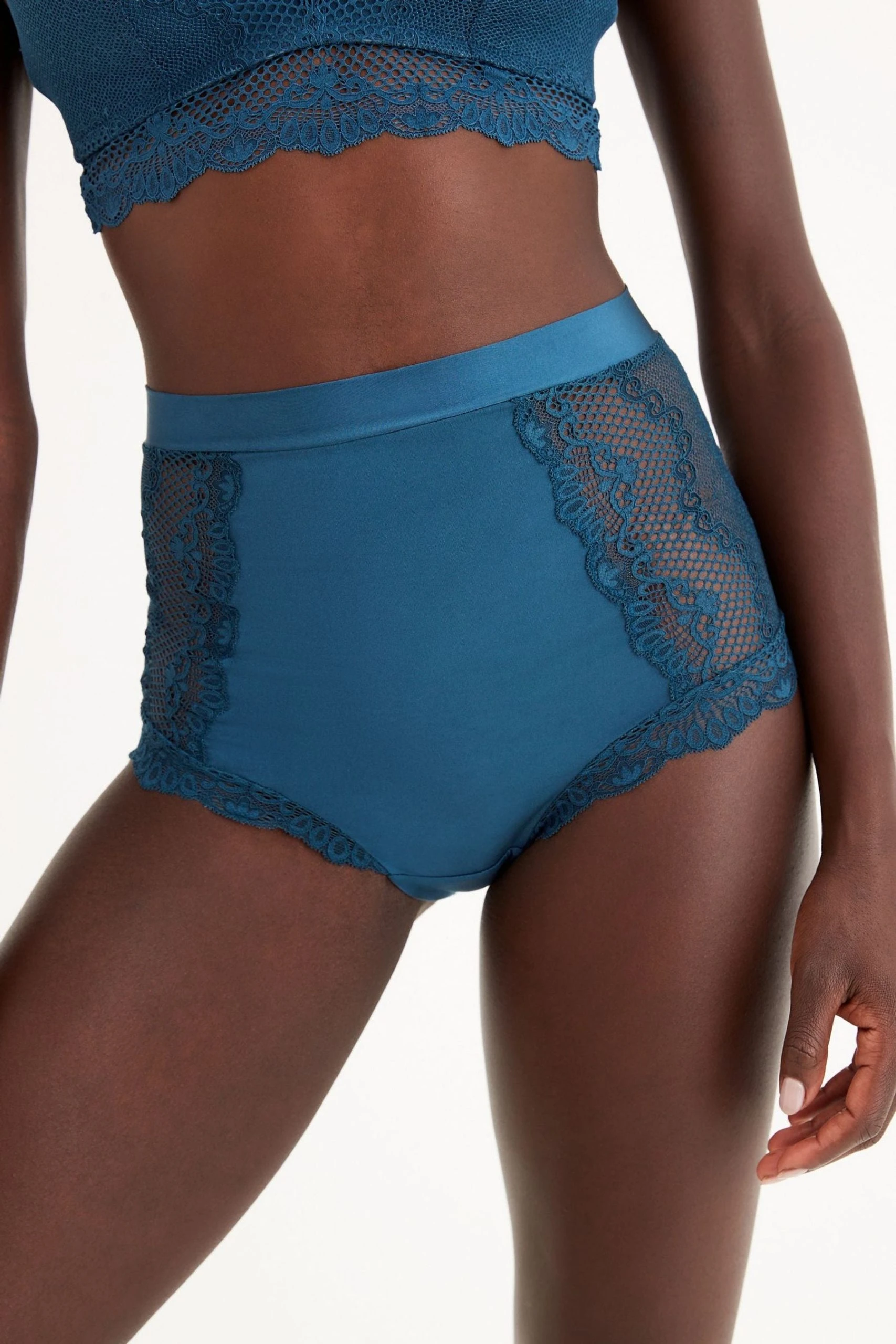 Pretty everyday lace knickers. Flattering high wiasted shape. Maximum coverage. Bright colour pops. Matching bras available.