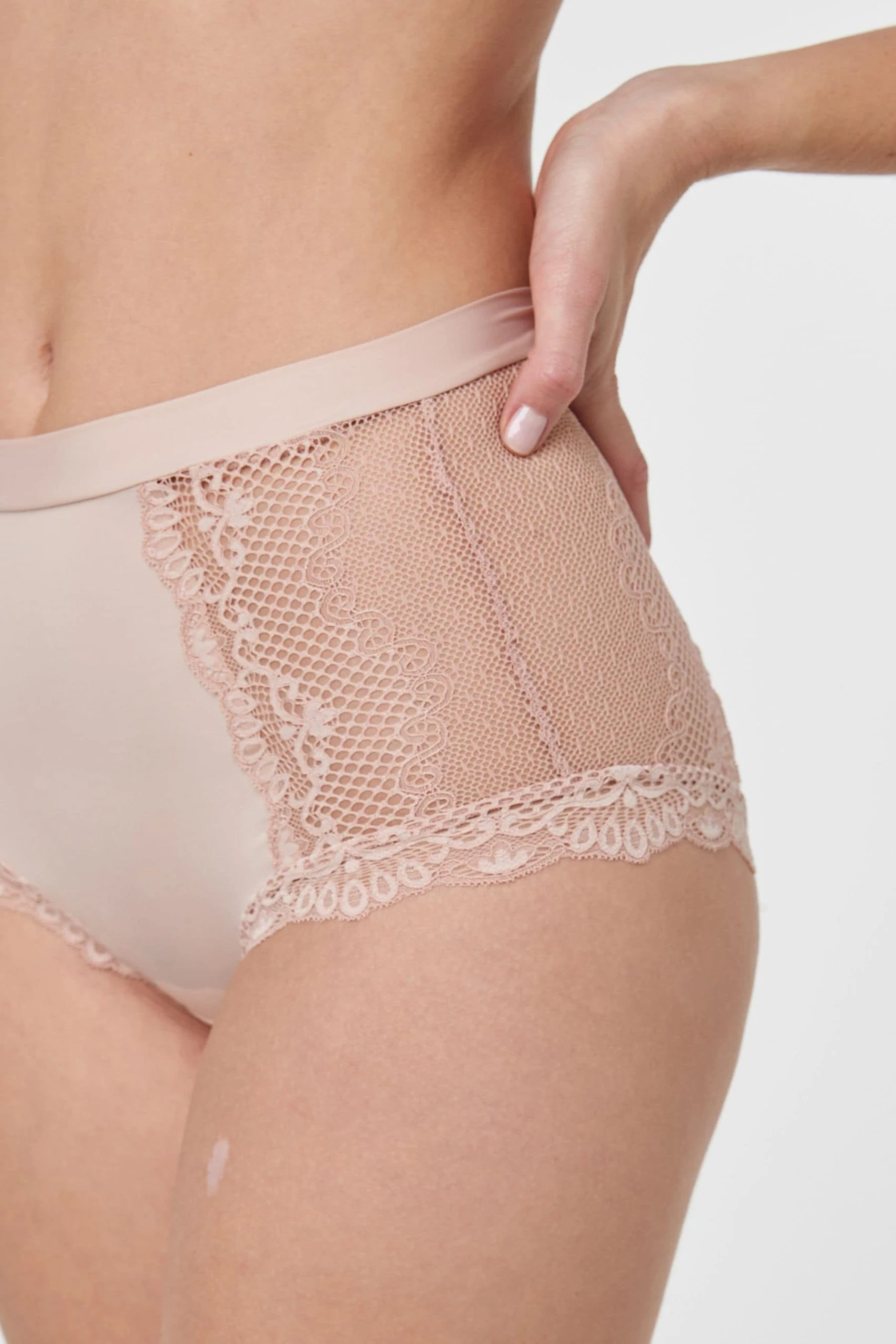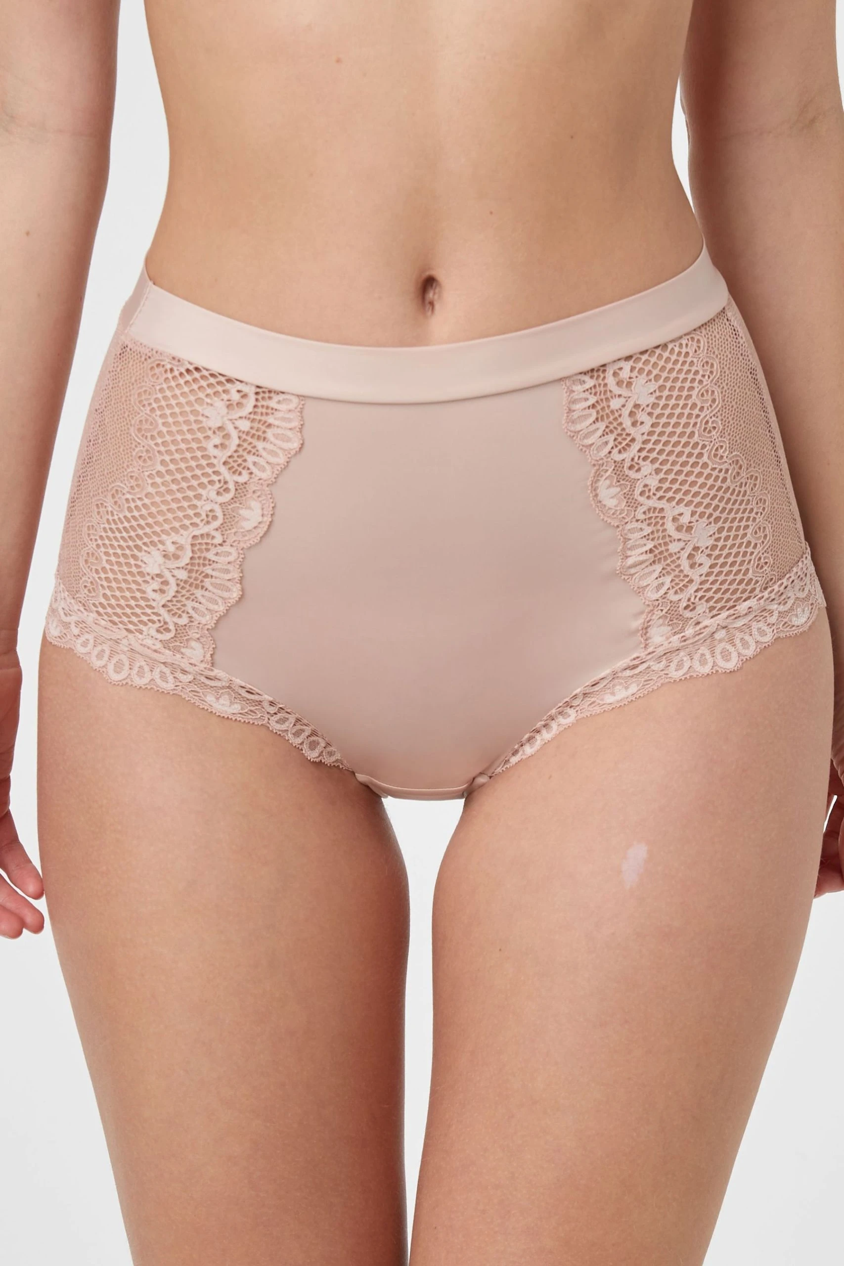 Pretty everyday lace knickers. Flattering high wiasted shape. Maximum coverage. Bright colour pops. Matching bras available.