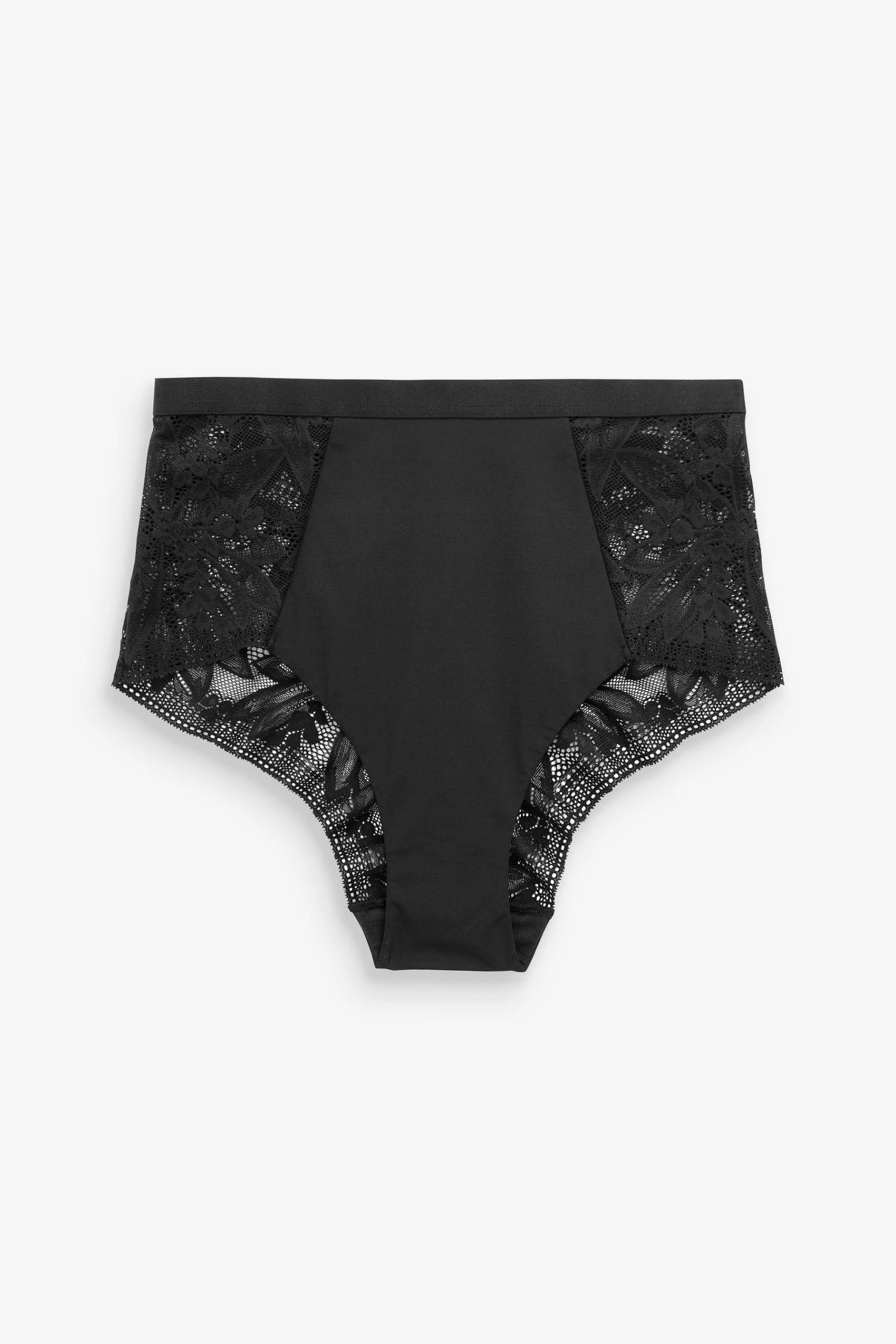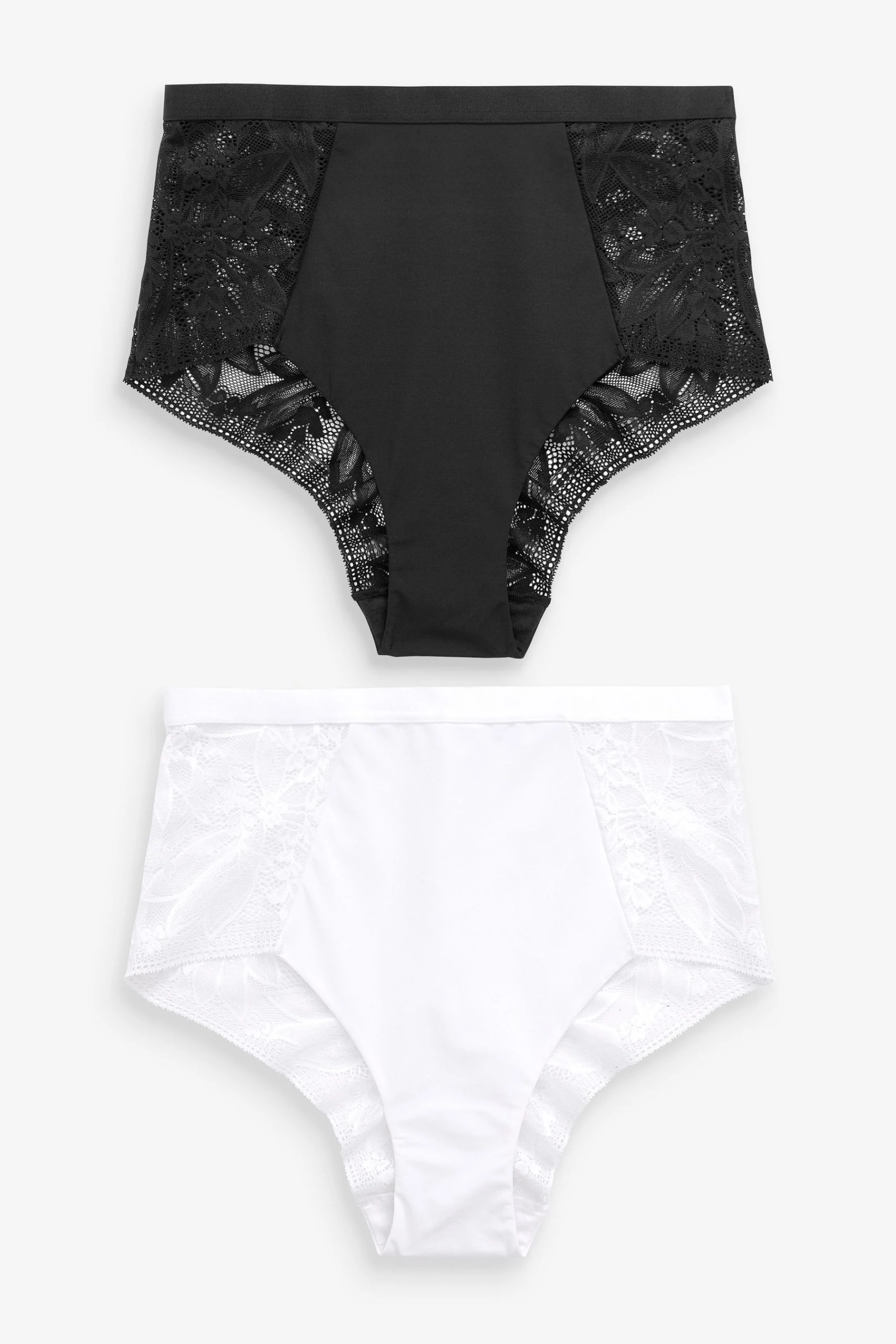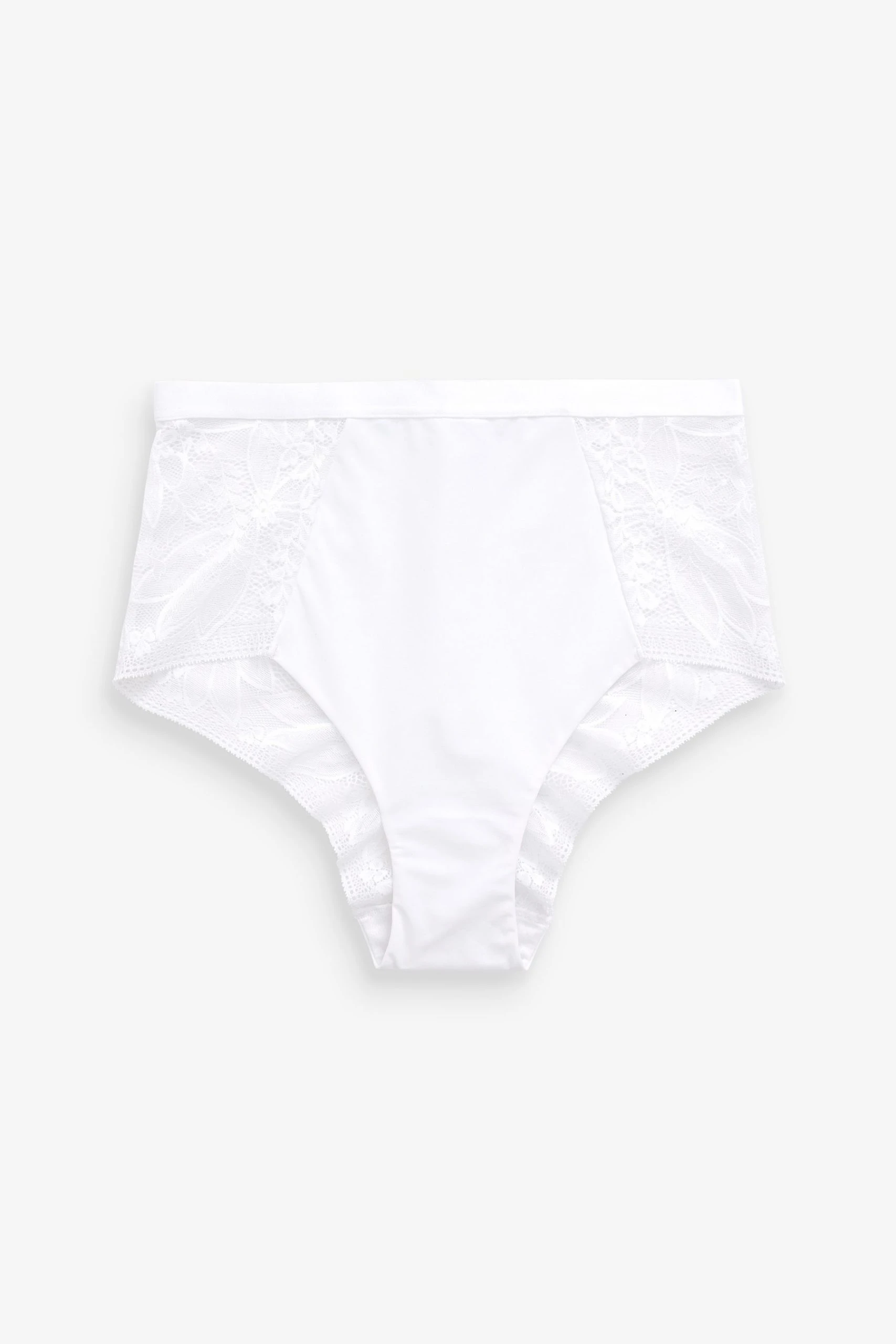 Add a touch of style to your lingerie drawer with these pretty lace knickers. Choose from either a high leg shape featuring full covering lace detail back or a high waist shape featuring a mesh front insert for tummy control.