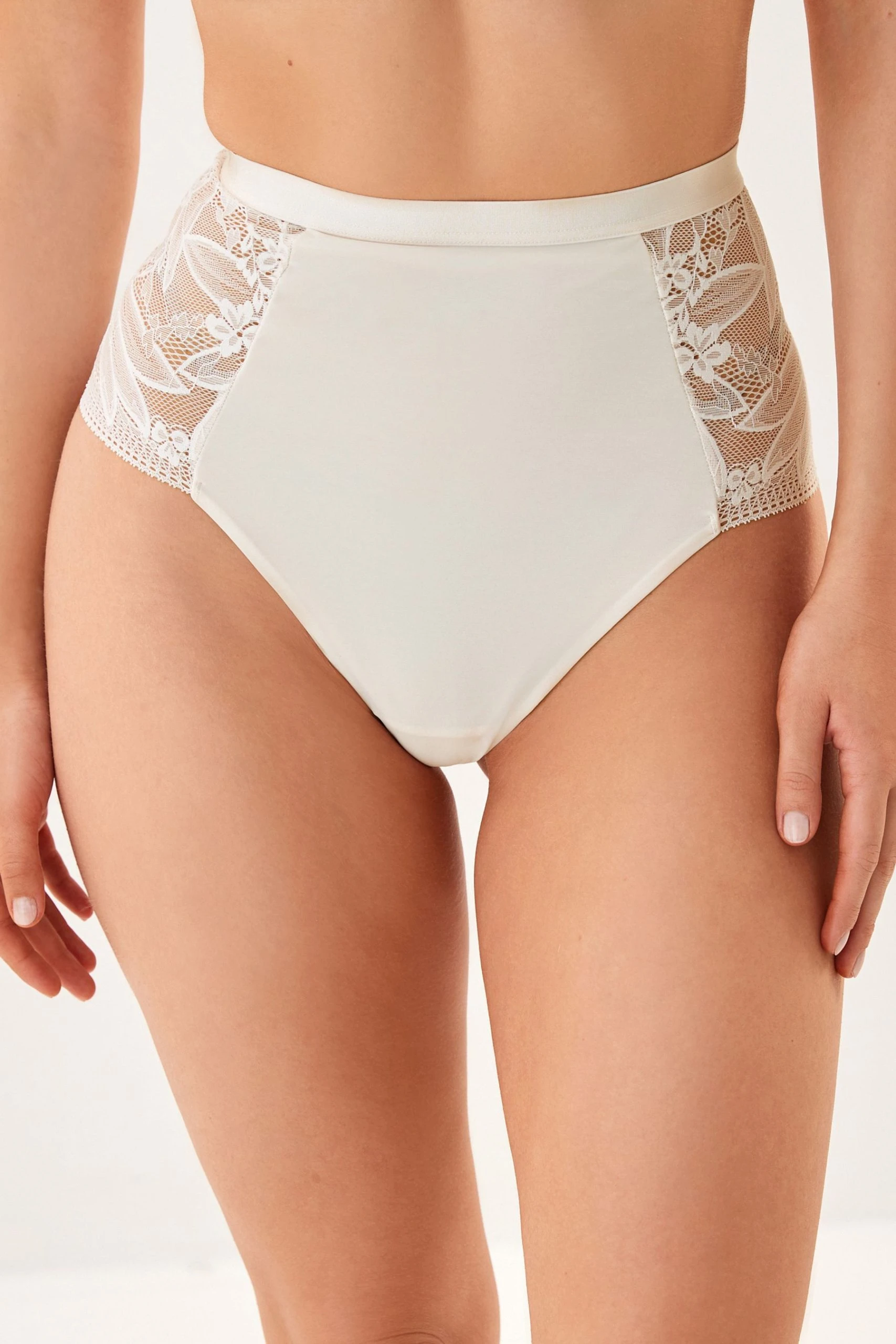 Add a touch of style to your lingerie drawer with these pretty lace knickers. Choose from either a high leg shape featuring full covering lace detail back or a high waist shape featuring a mesh front insert for tummy control.