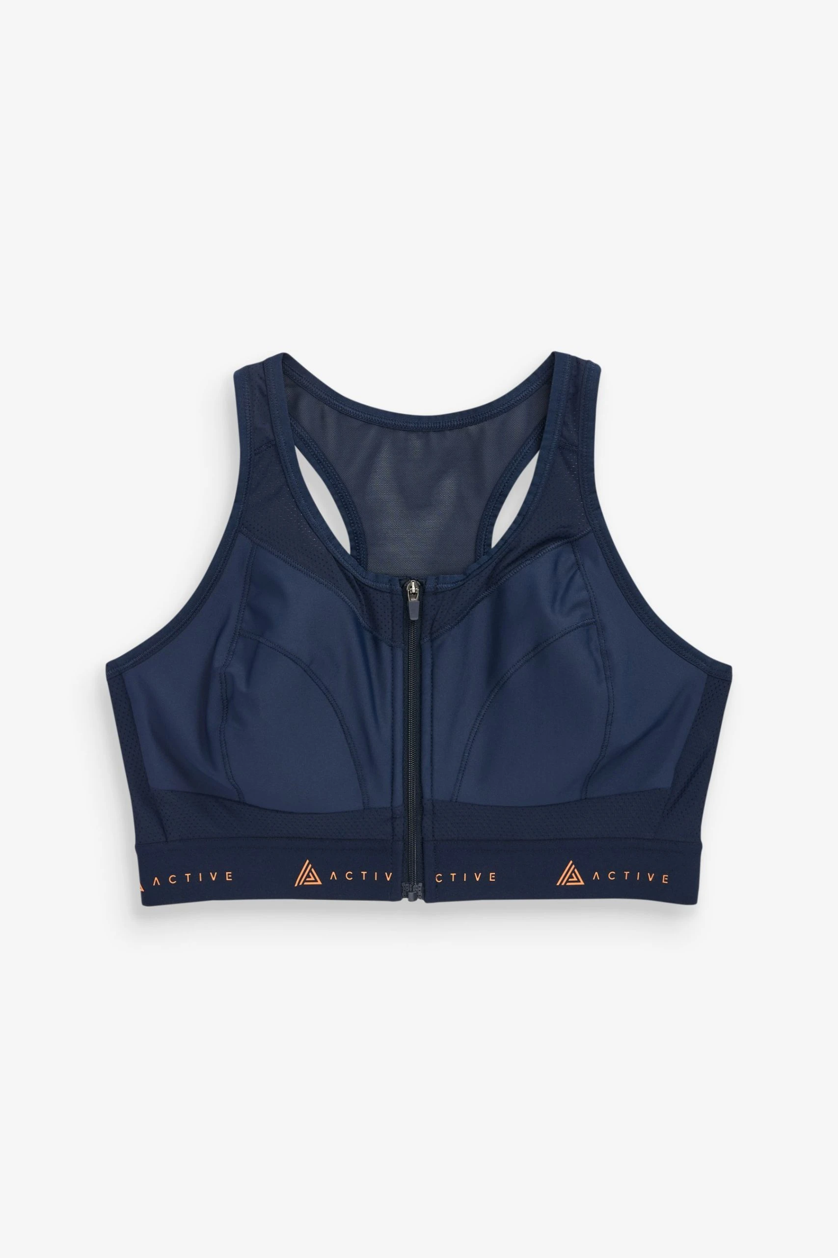 Next Navy Blue Active Sports DD+ Zip Front High Impact Bra