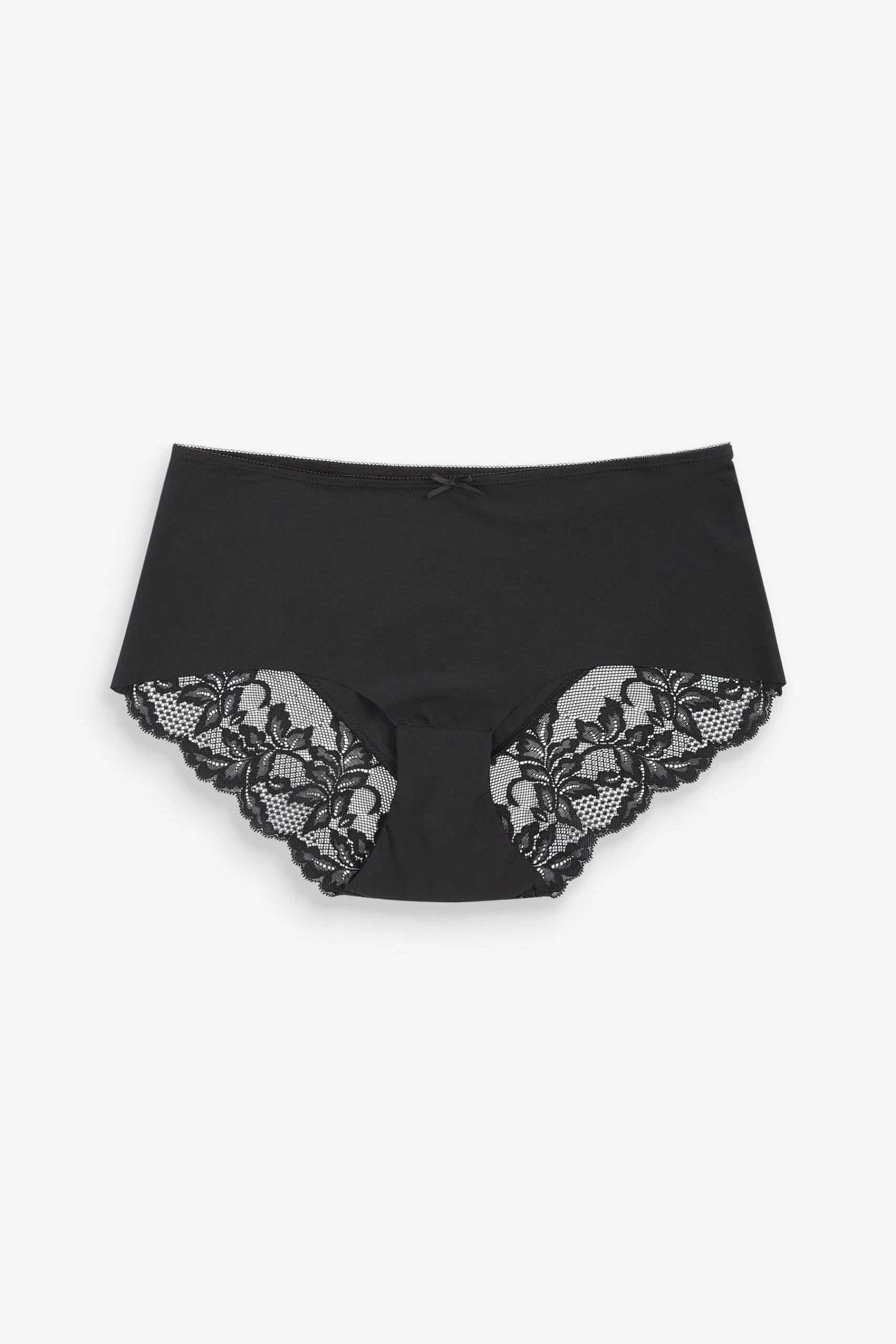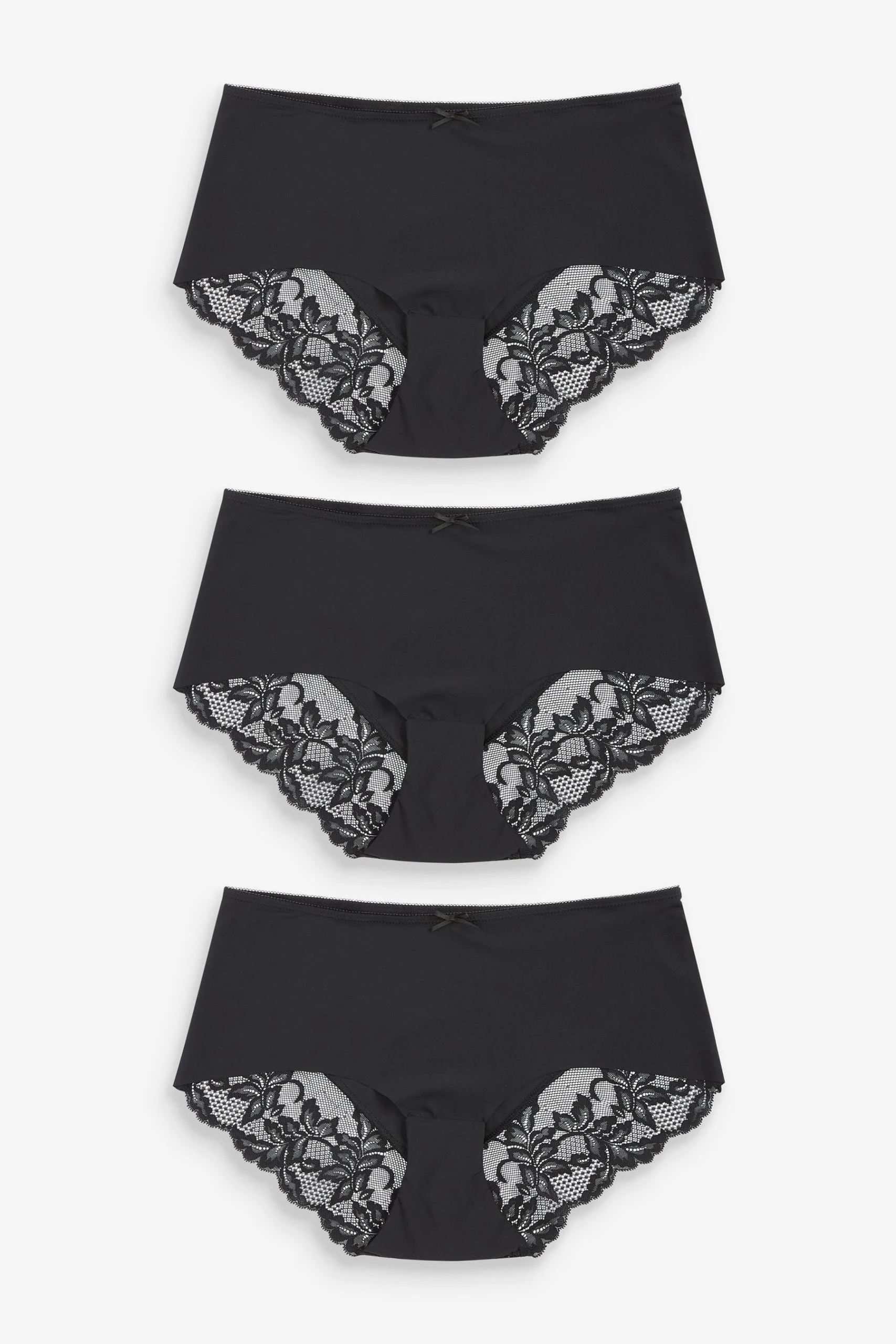 Our Brazilian lace back briefs are crafted to hide under the tightest outfits while providing a soft and comfortable fit. They feature flat lace to sit smoothly against the skin. Smoothing microfibre briefs with a lace back. Perfect for everyday wear and as a no-VPL solution. Sits lower on the hips with minimal bottom coverage.