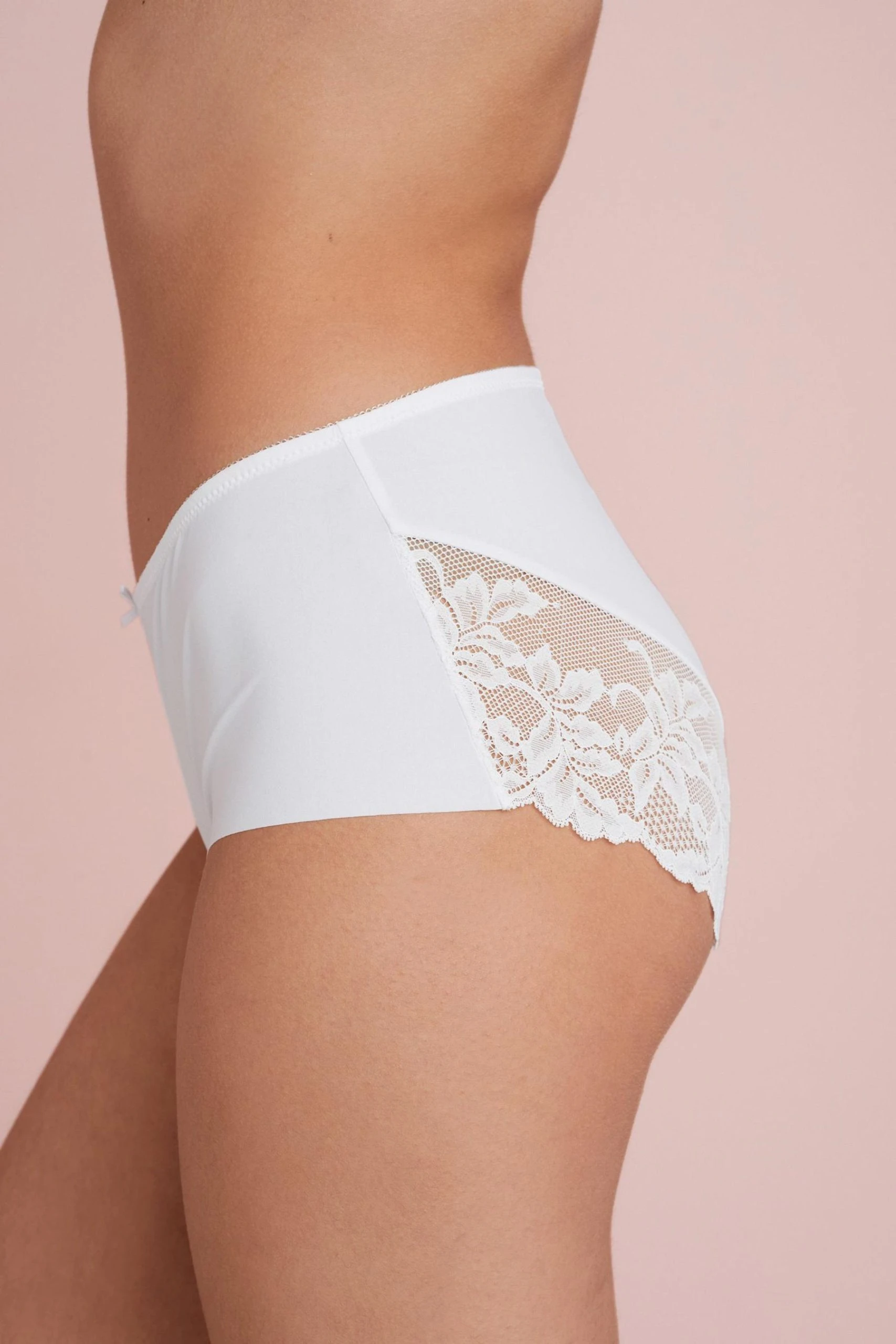 Our Brazilian lace back briefs are crafted to hide under the tightest outfits while providing a soft and comfortable fit. They feature flat lace to sit smoothly against the skin. Smoothing microfibre briefs with a lace back. Perfect for everyday wear and as a no-VPL solution. Sits lower on the hips with minimal bottom coverage.