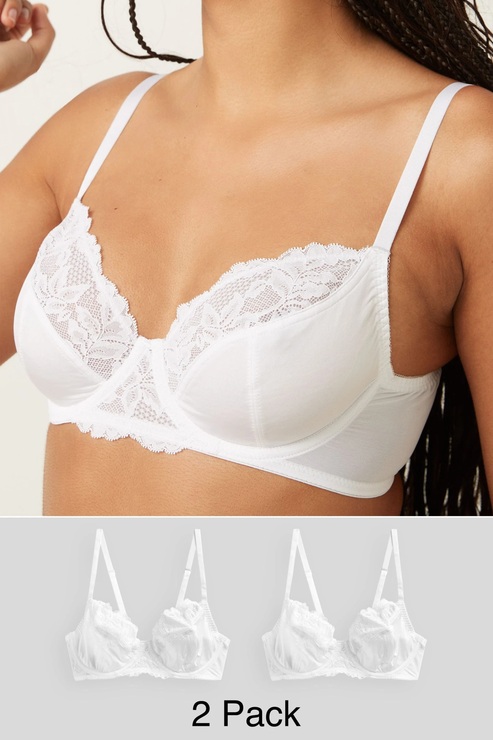 Celebrate your natural silhouette in this two-pack full-cup bra. Featuring non-padded, underwired cups that offer support and lift in all the right places and do not compromise on comfort. Pretty lace florals on the cups and bridge add an elegant touch.