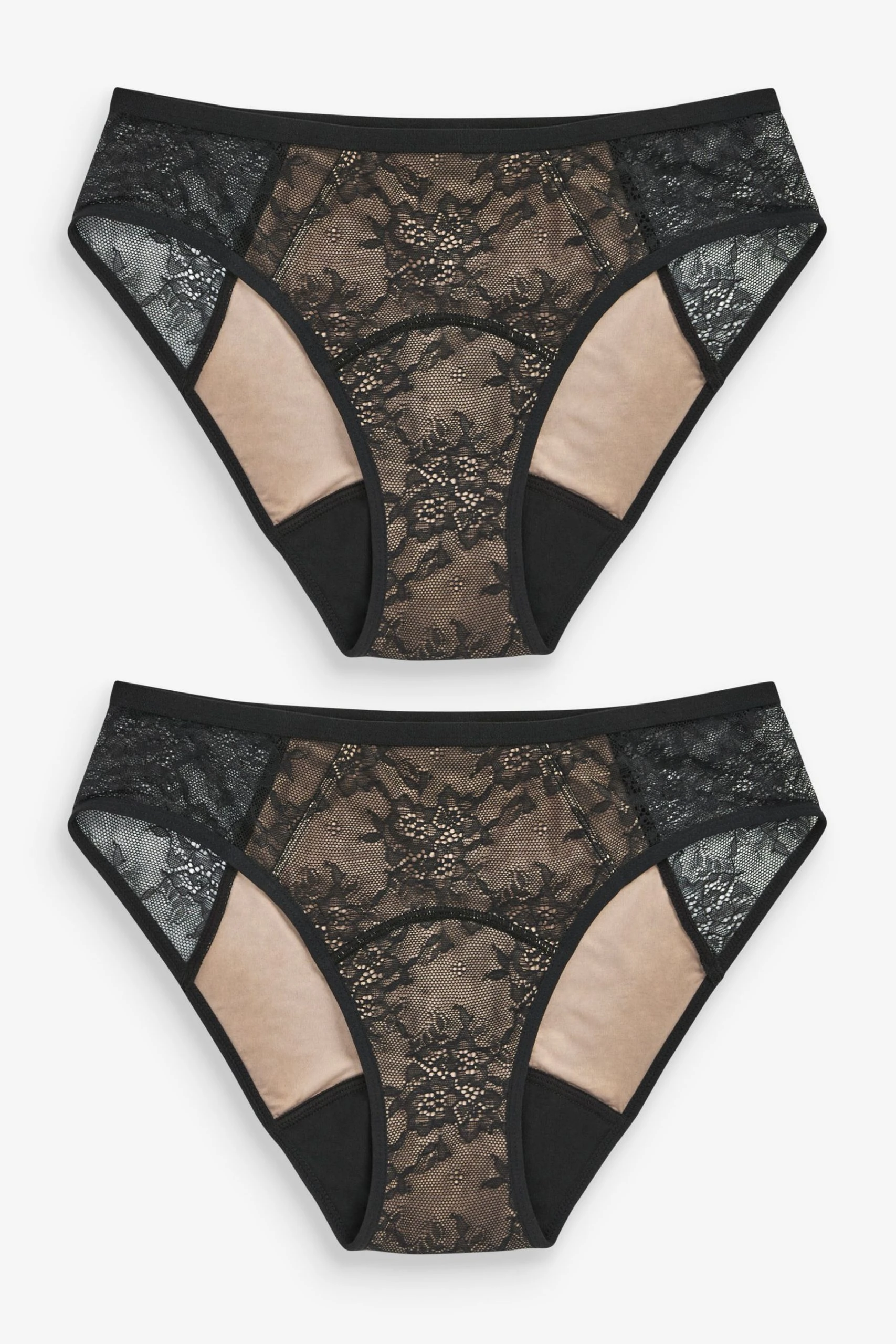 2 x Knickers Main 87% Nylon, 13% Elastane. Body Lining 75% Nylon, 25% Elastane. Gusset 64% Polyester, 36% Cotton.