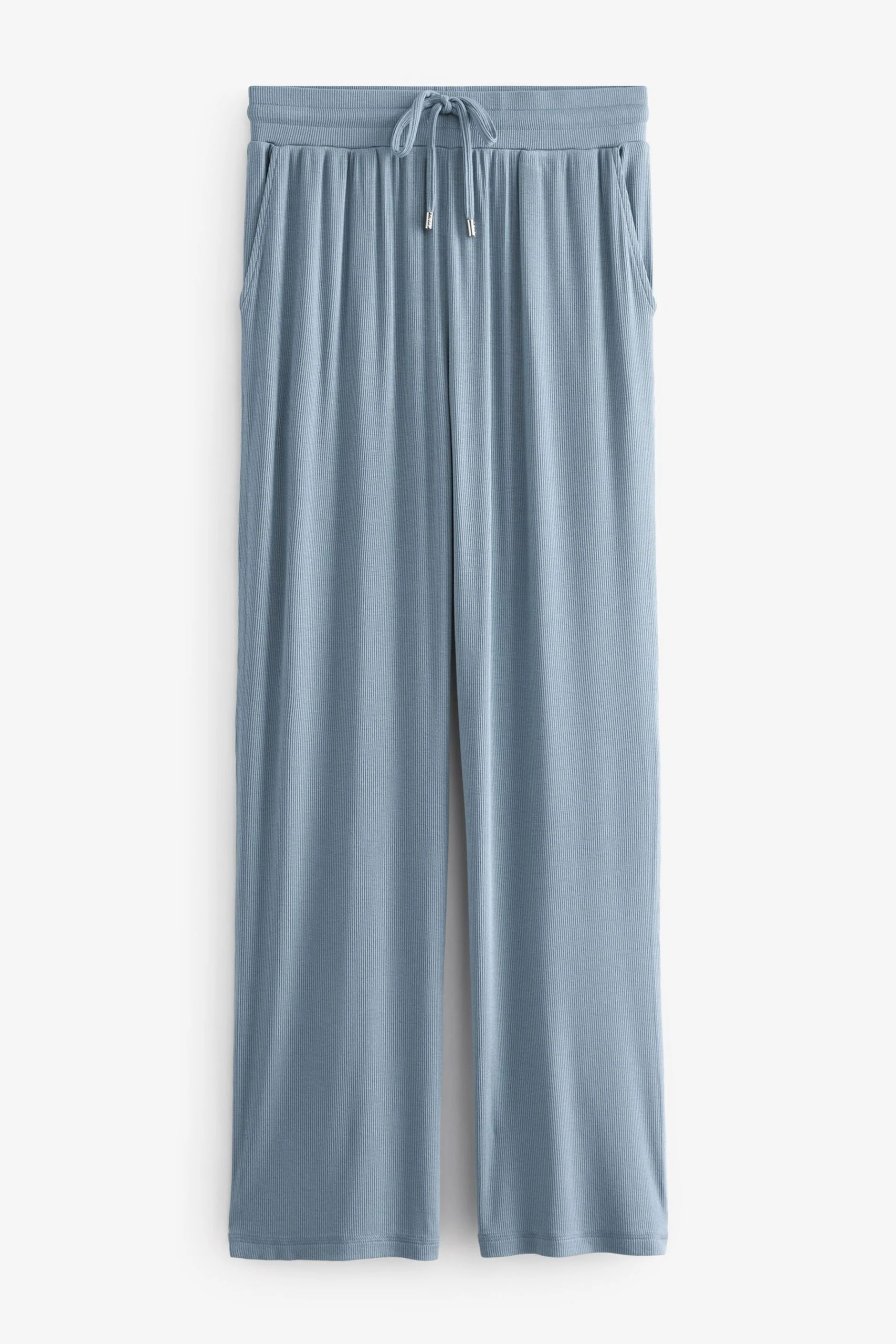 You will be counting down the hours until bedtime with our stunning pyjama set. Made from a sumptuously soft viscose with a beautiful drape, this pretty ribbed two piece set includes a long sleeve top with batwing sleeves and a notched neckline and it comes with a pair of wide leg trousers that are fitted with an elasticated waistband for a comfortable fit.