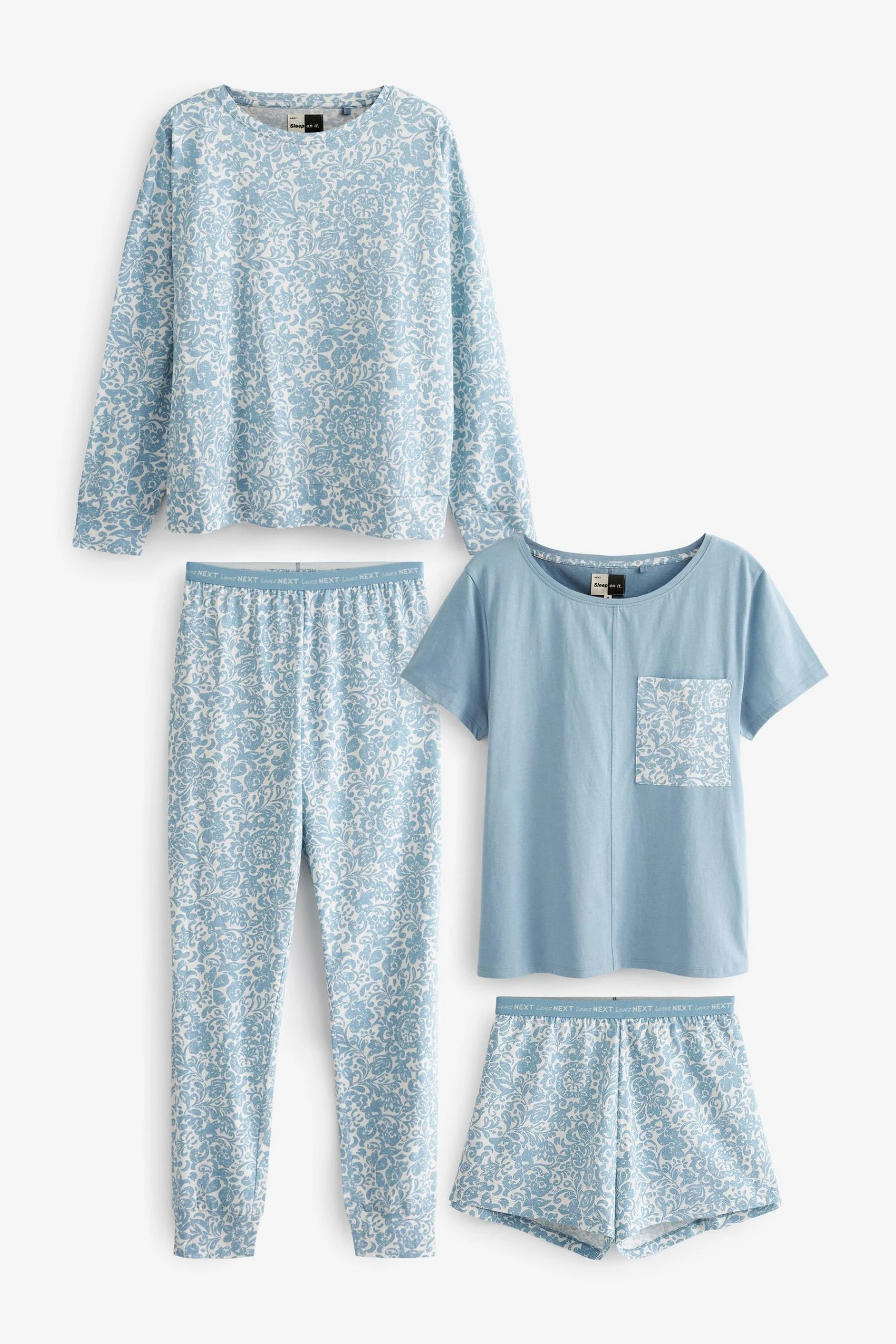 Pack of 2 pyjama sets. Printed. One long sleeve top with dropped shoulder. Patch chest pocket on short sleeve top. Crew neck. Cuffed Pyjamas. Shorts. Branded elasticated waist.