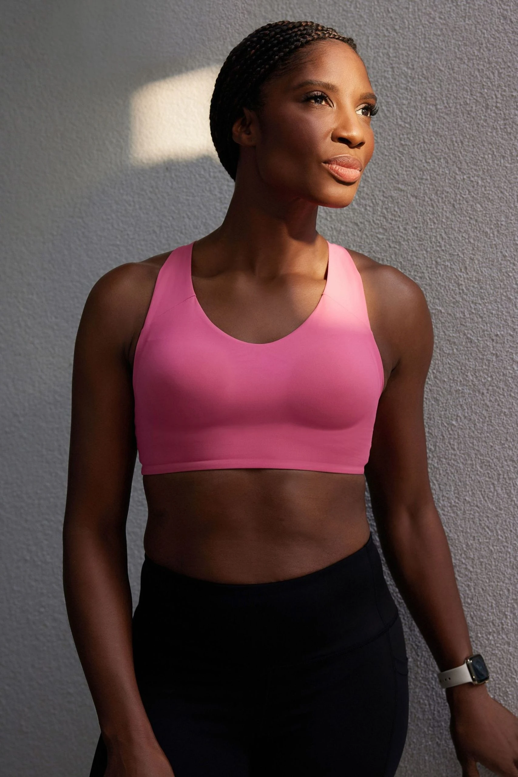 Give your workout a boost with this non-wire medium-impact sports bra. The bra features strappy back detailing with sewn-in cups. Made from a moisture-wicking fabric, this top is designed for medium-impact workouts, ideal for yoga, to ensure you stay comfortable and supported throughout.