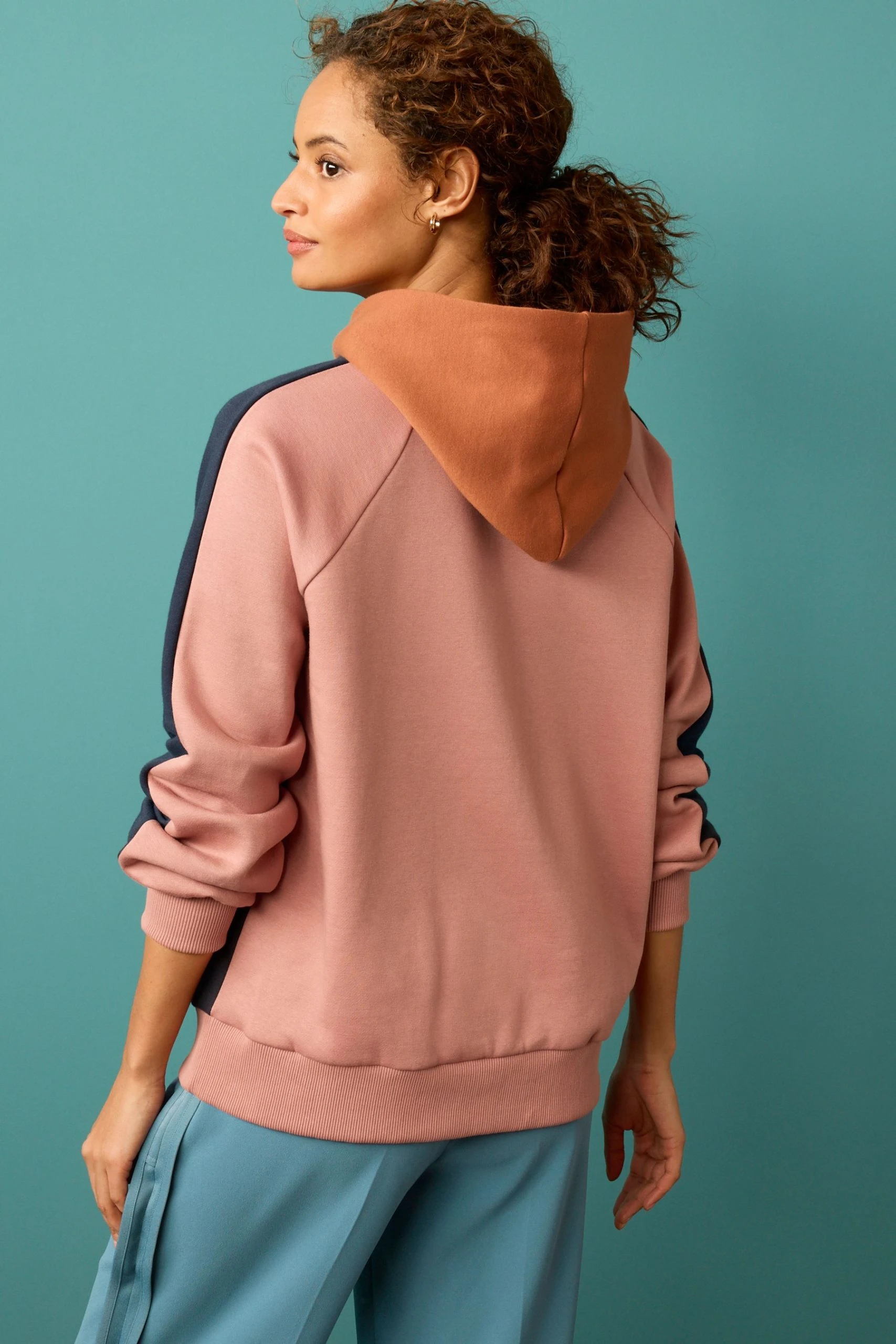 Next Tan Brown Sweat Colour Block Hoodie