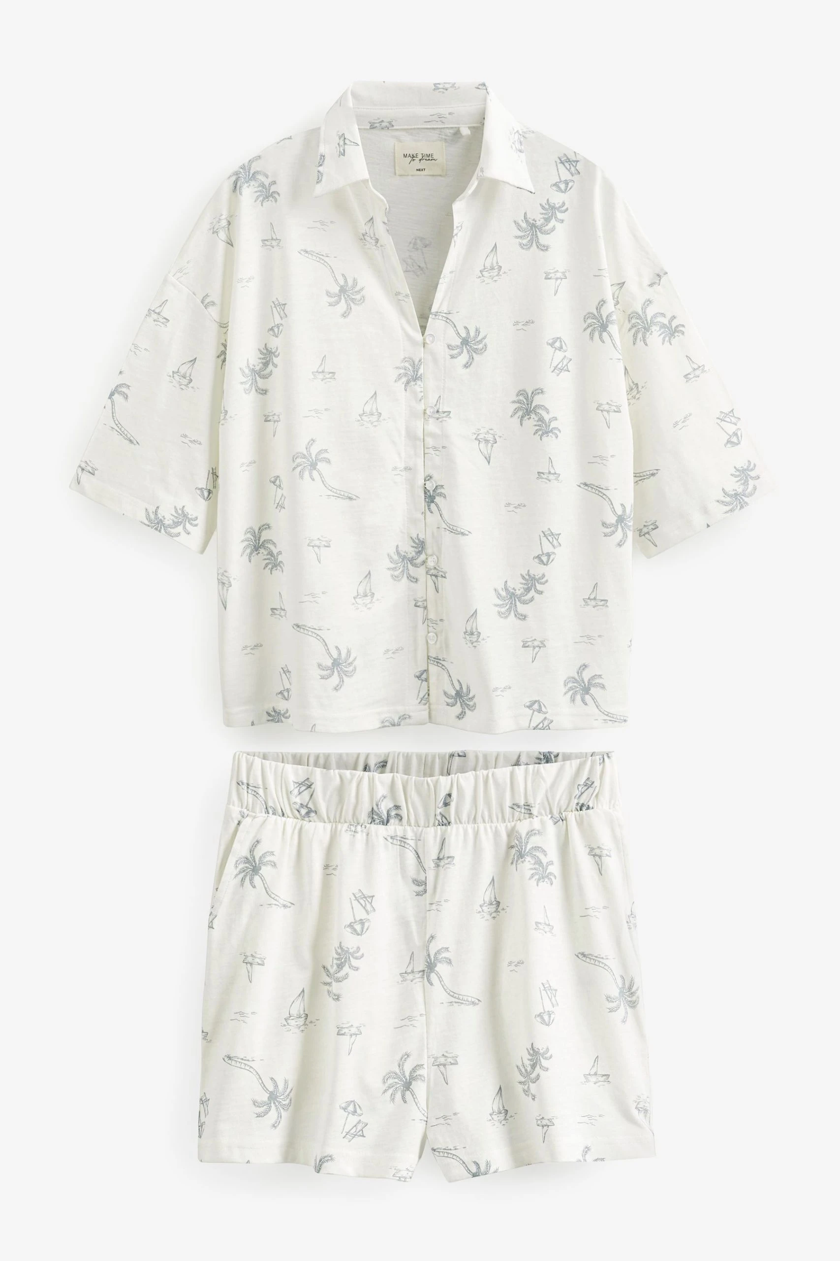 Next White Palm Print Short Sleeve Button Through Pyjamas