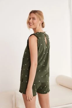 Next Cream Floral Linen Blend Button Through Short Set Pyjamas