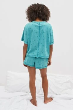 Next Teal Blue Palm Tree Cotton Short Pyjamas Set